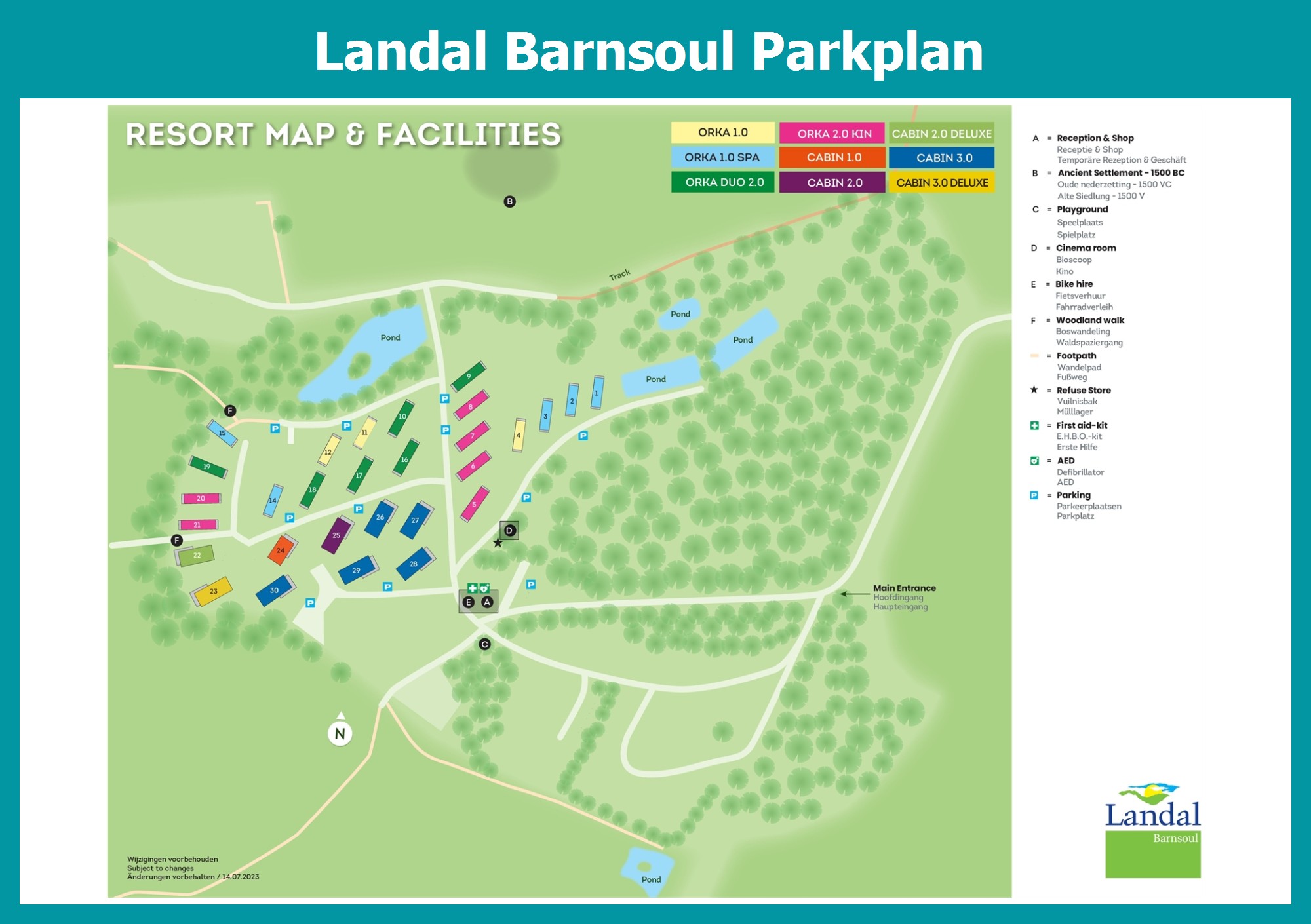 Aktueller und übersichtlicher Parkplan von Landal Barnsoul mit alle Unterkünfte und Einrichtungen, auch als PDF herunterladbar.
