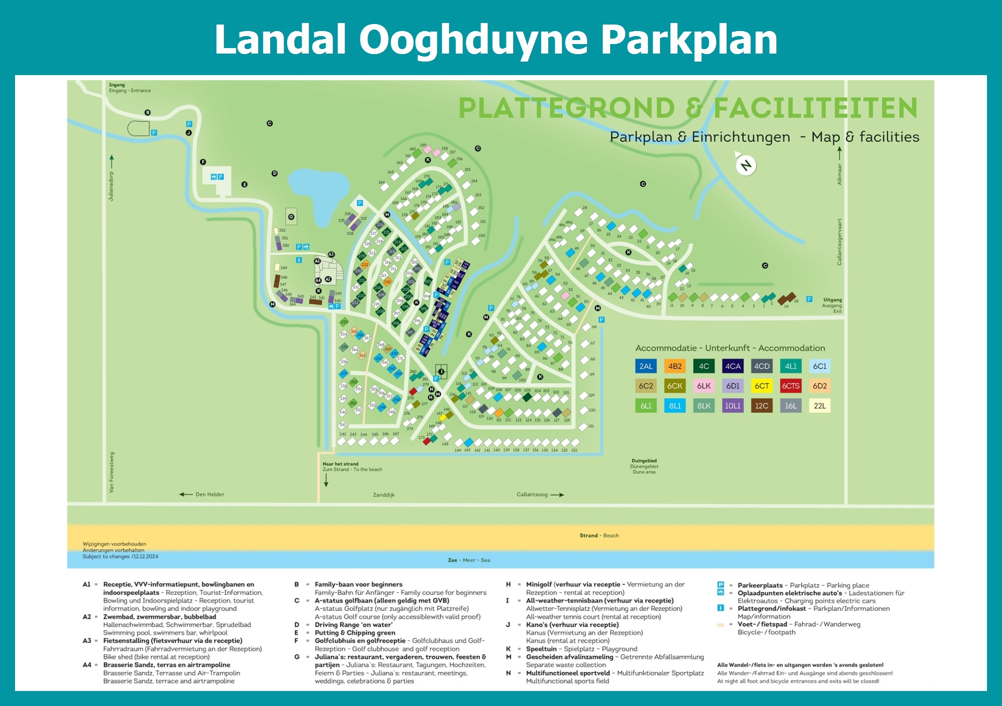 Aktueller und übersichtlicher Parkplan von Landal Ooghduyne mit alle Unterkünfte und Einrichtungen, auch als PDF herunterladbar.
