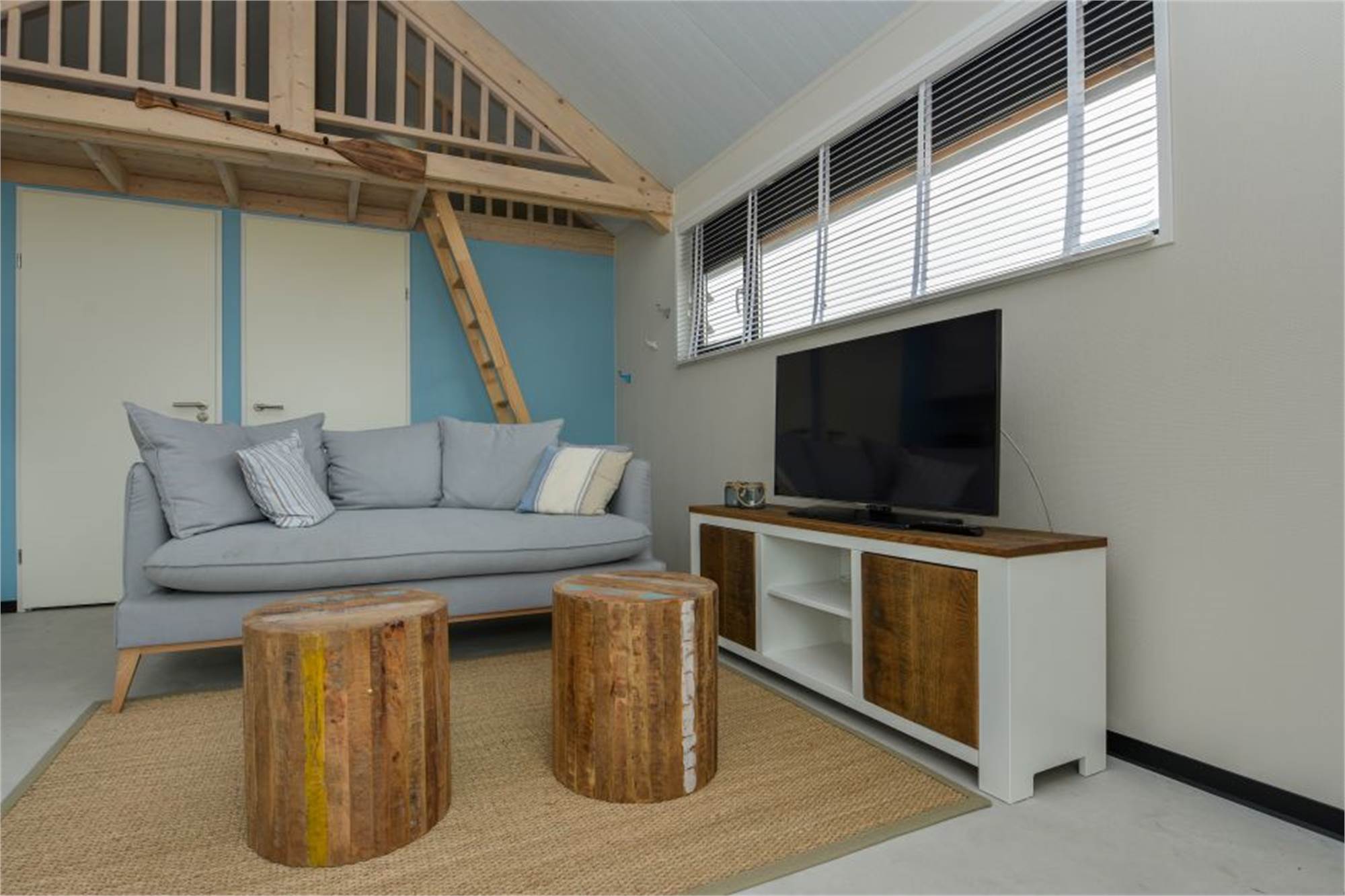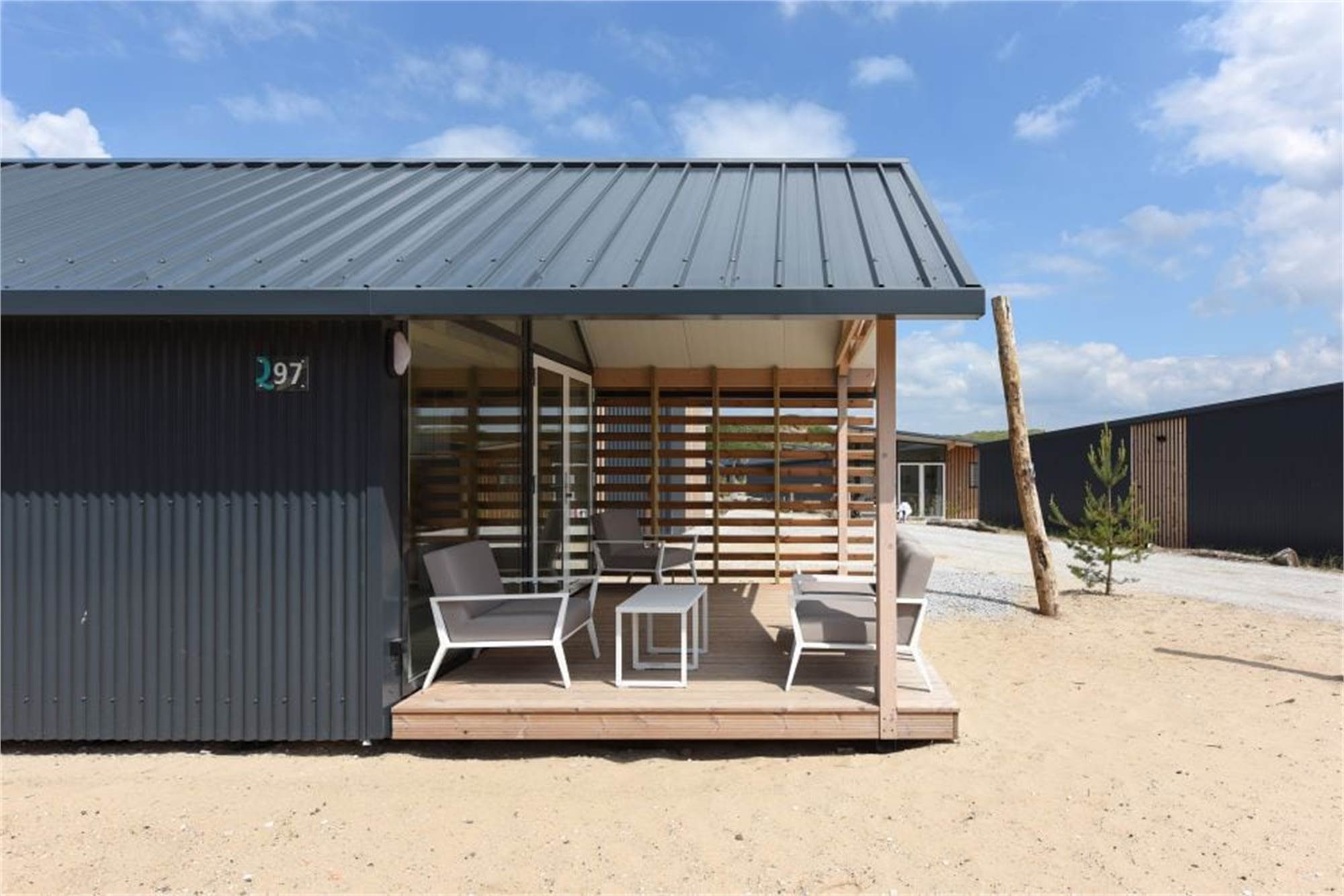 Diese freistehende Lodge ist für 4 Personen geeignet. Im Wohnzimmer befindet sich eine Sitzecke, eine Essecke und ein Smart-TV. Die Küche ist mit einem Kühlschrank mit Gefrierfach, einer Mikrowelle, Kaffeemaschine und einem Wasserkocher eingerichtet. Im Schlafzimmer unten befinden sich 2 Einzelbetten. Über eine Holztreppe gelangst du auf den Schlafboden mit zwei weiteren Einzelbetten. Das Badezimmer verfügt über ein WC, ein Waschbecken und eine begehbare Dusche. Zur Lodge gehören ein Garten mit Veranda und Gartenmöbeln. Die gesamte Lodge ist mit Fußbodenheizung versehen und verfügt über kostenloses WiFi.