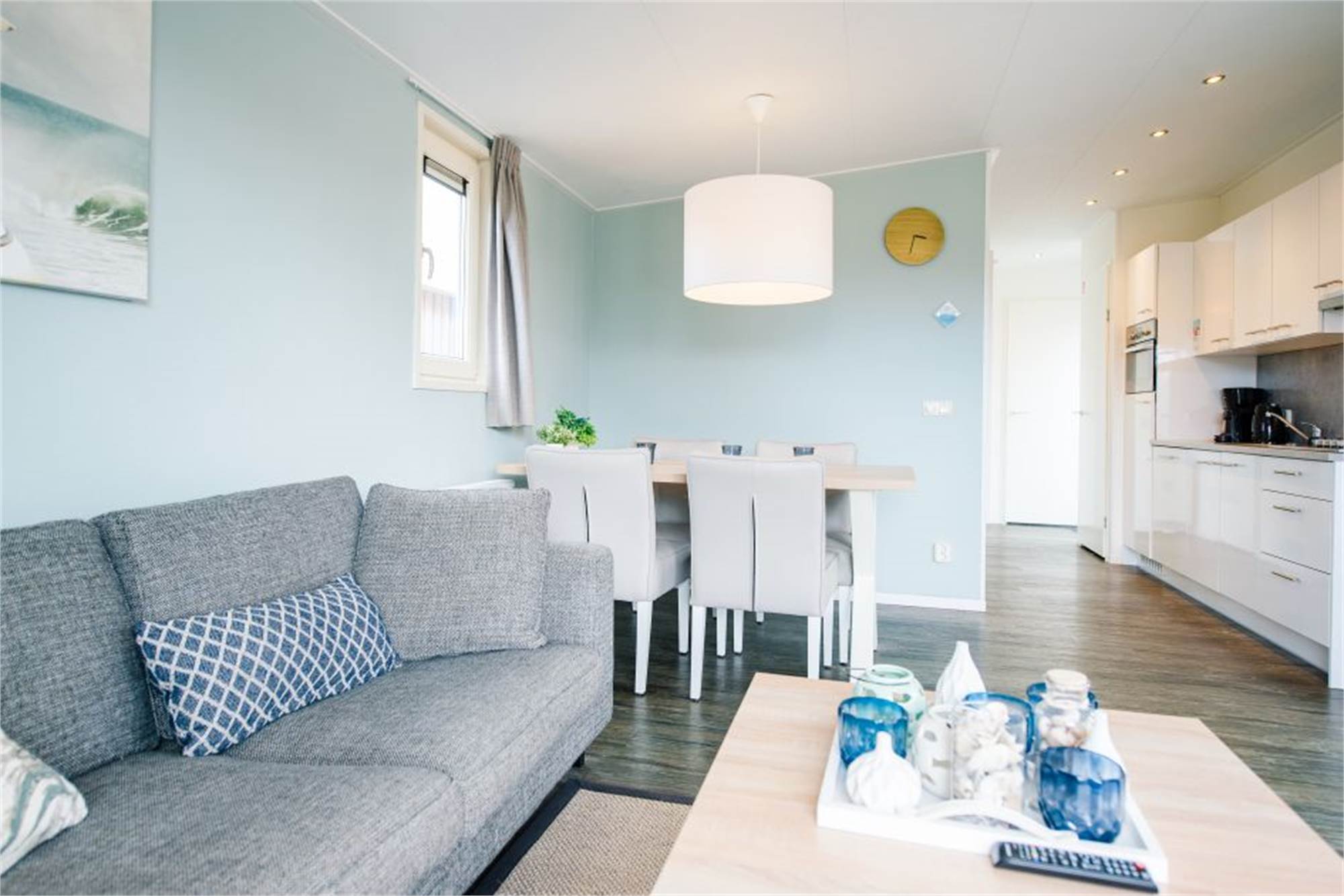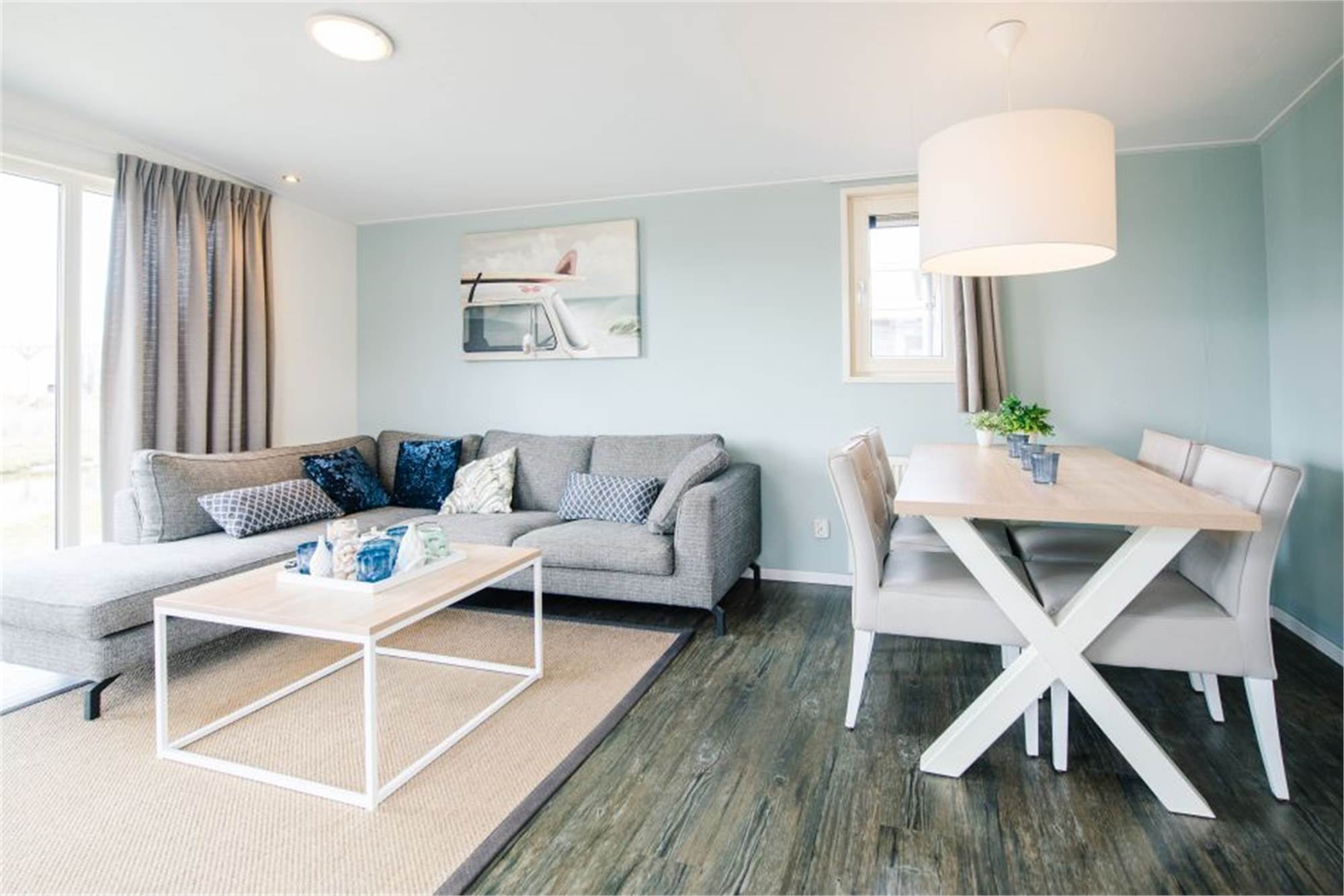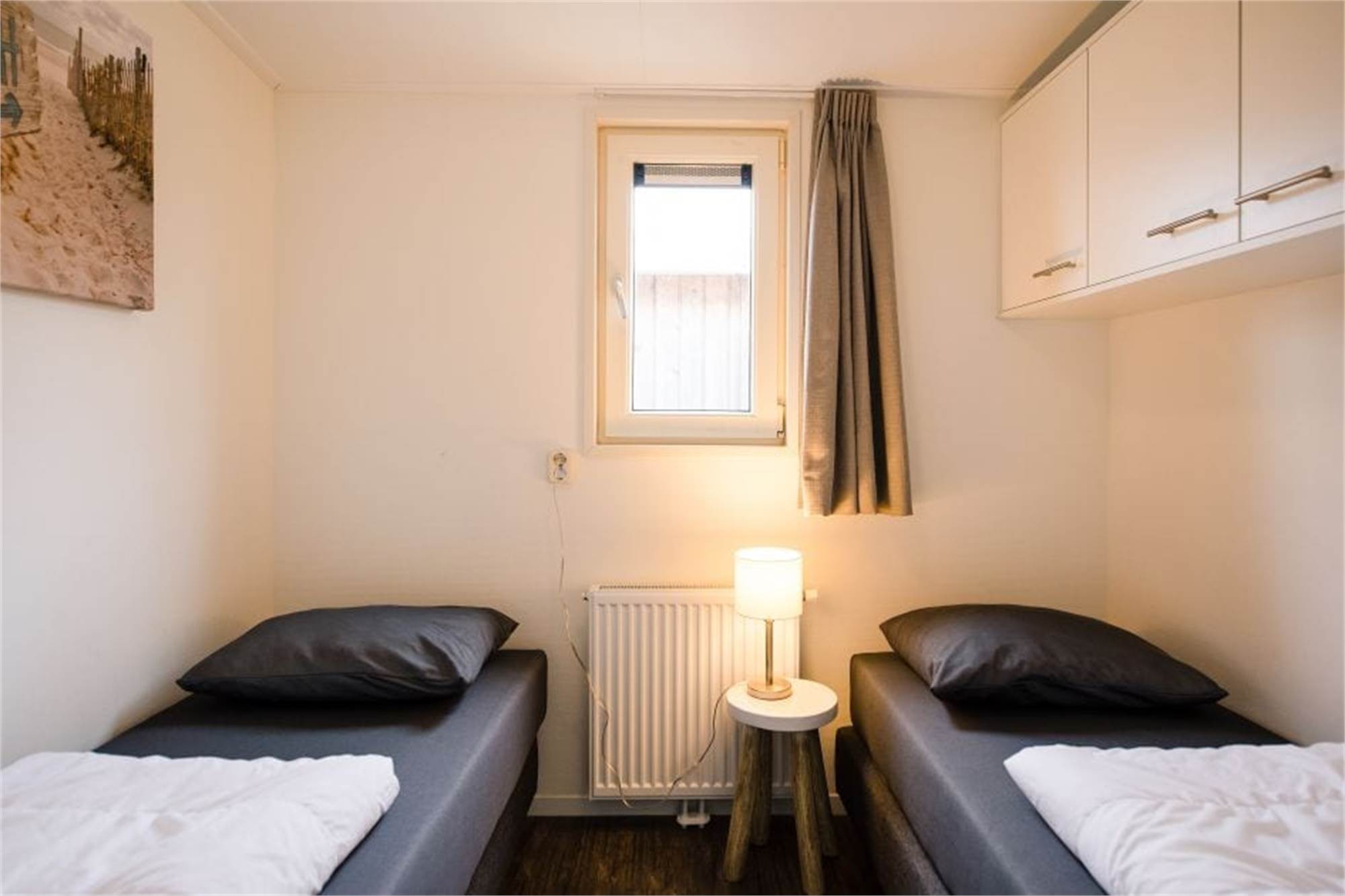 Dieses neue, freistehende Chalet eignet sich für 4 Personen. Das Wohnzimmer verfügt über einen separaten Essbereich und die Küche ist u. a. mit Kombi-Mikrowelle, Geschirrspüler und Kaffeemaschine ausgestattet. Außerdem gibt es 2 Schlafzimmer mit je 2 Einzel-Boxspringbetten sowie ein Badezimmer mit Dusche und Toilette. Im Außenbereich finden Sie eine möblierte Veranda und die Nutzung von WiFi ist gratis.