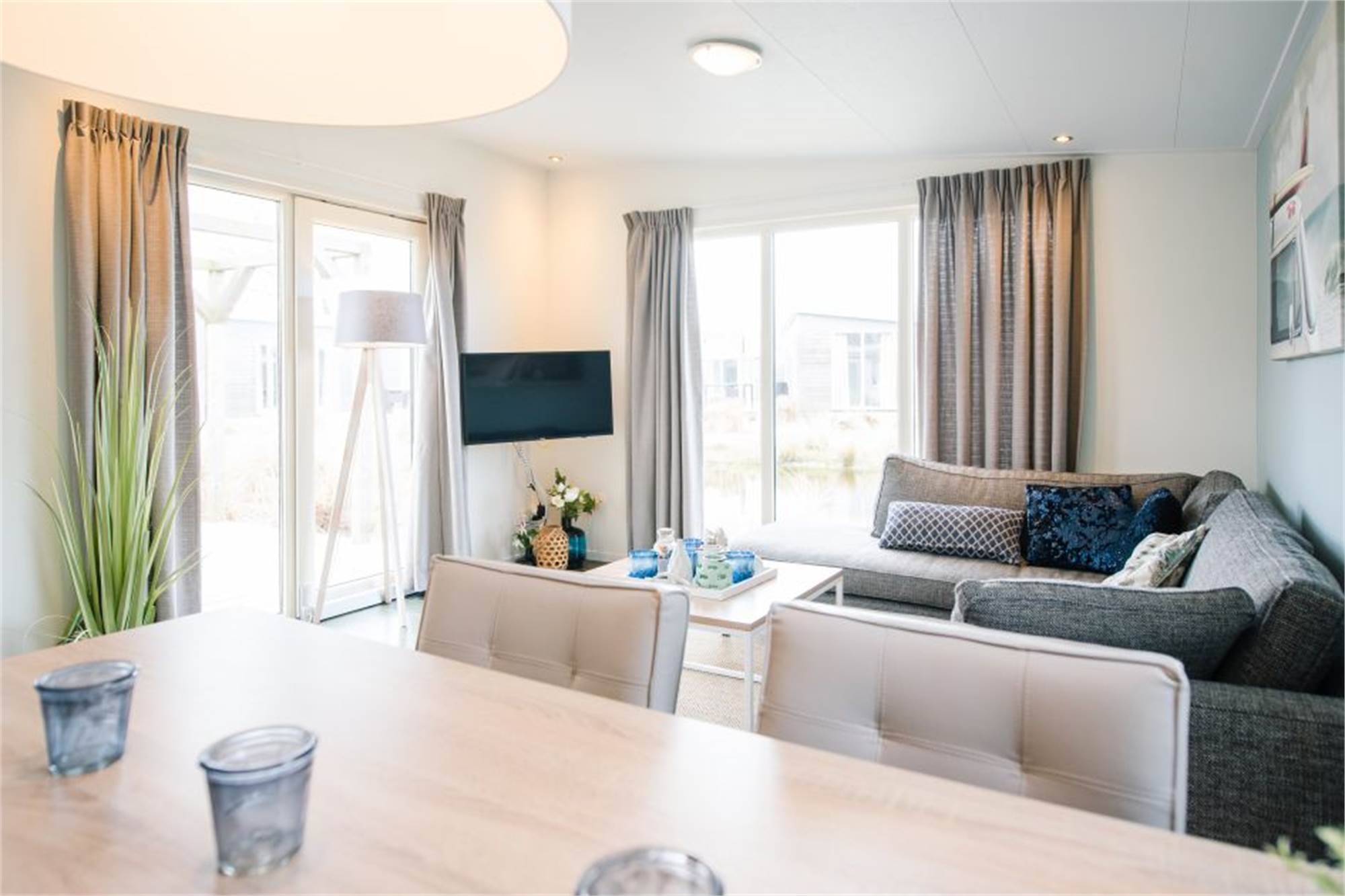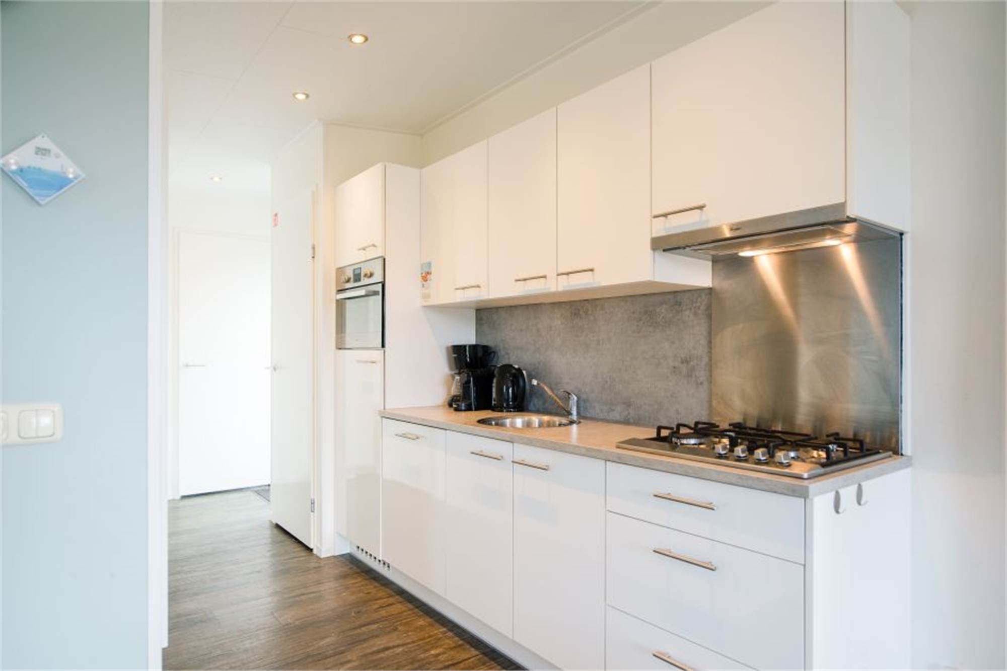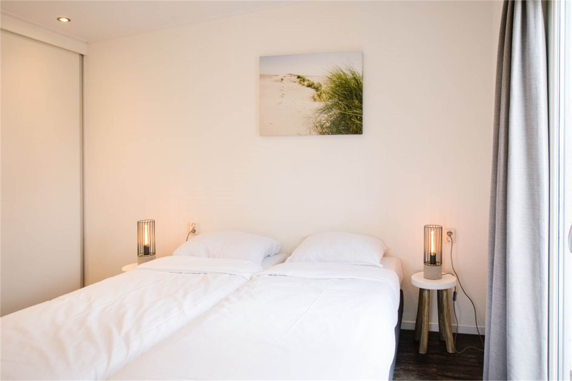 Dieses neue, freistehende Chalet eignet sich für 4 Personen. Das Wohnzimmer verfügt über einen separaten Essbereich und die Küche ist u. a. mit Kombi-Mikrowelle, Geschirrspüler und Kaffeemaschine ausgestattet. Außerdem gibt es 2 Schlafzimmer mit je 2 Einzel-Boxspringbetten sowie ein Badezimmer mit Dusche und Toilette. Im Außenbereich finden Sie eine möblierte Veranda und die Nutzung von WiFi ist gratis.