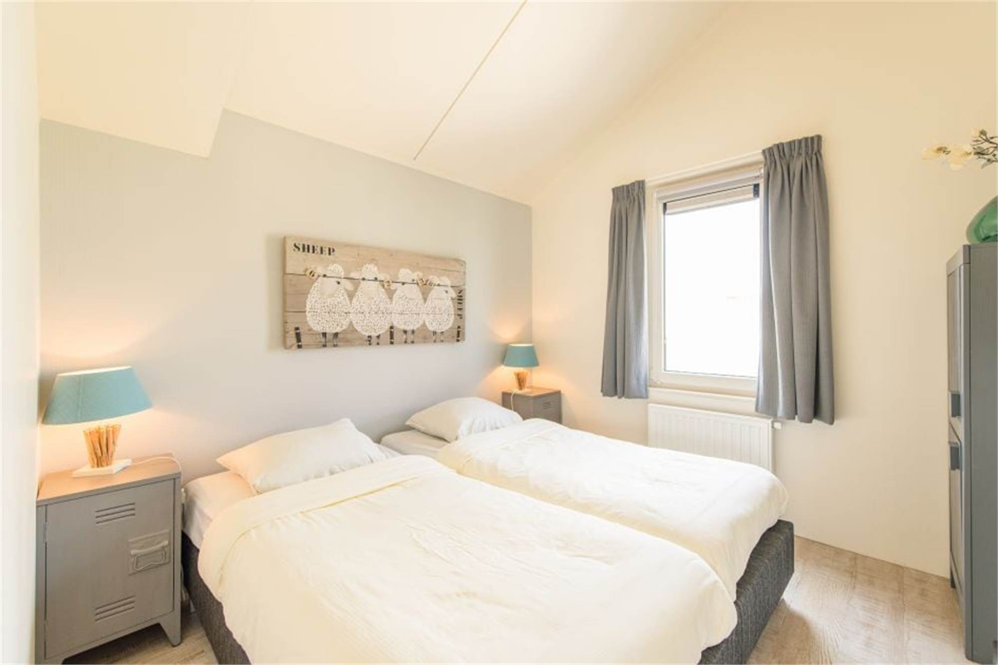 Dieses freistehende Chalet in Strandnähe eignet sich für 4 Personen. Das Wohnzimmer verfügt über einen separaten Essbereich und die Küche ist u. a. mit Mikrowelle, Geschirrspüler und Kaffeemaschine ausgestattet. Außerdem gibt es 2 Schlafzimmer mit je 2 Einzel-Boxspringbetten (eins davon mit TV-Gerät) sowie ein Badezimmer mit Dusche und Toilette. Das Chalet bietet ein Campingbettchen und einen Kinderstuhl. Im Außenbereich finden Sie eine möblierte Terrasse und die Nutzung von WiFi ist gratis.