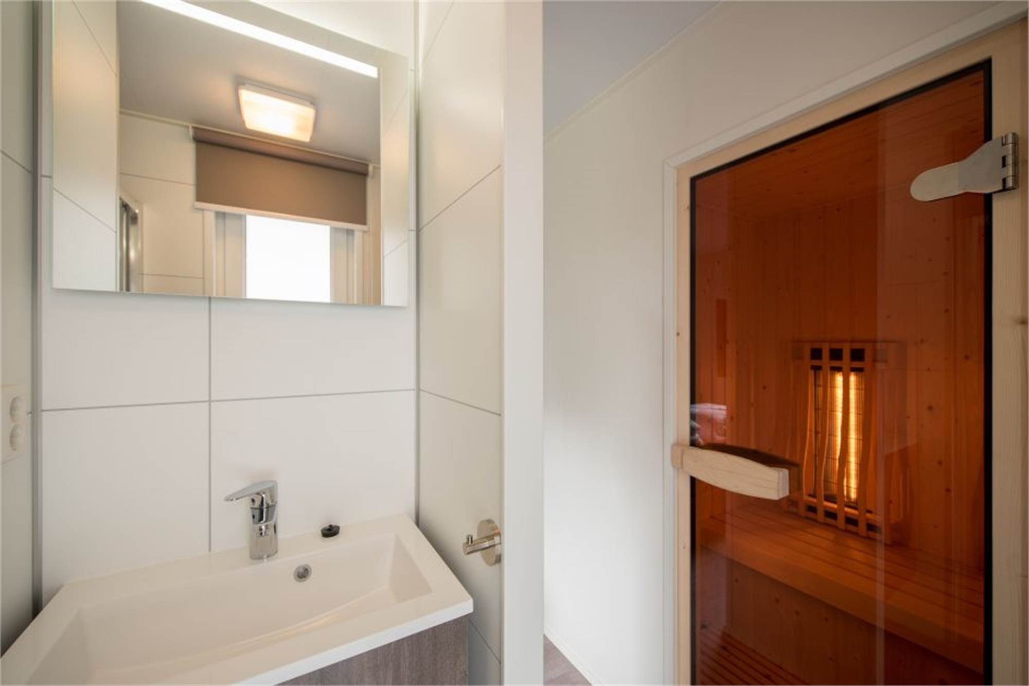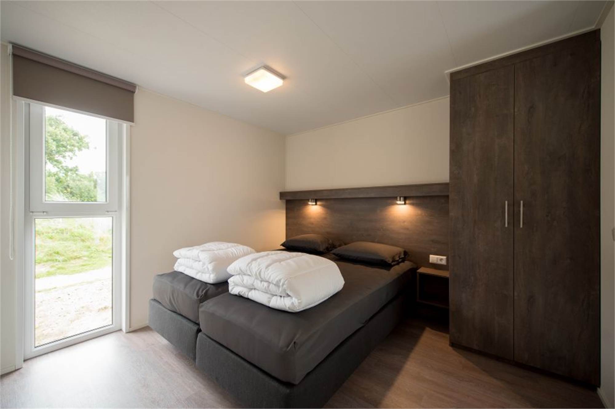 Dieses neue, freistehende Chalet eignet sich für 4 Personen. Das Wohnzimmer verfügt über einen separaten Essbereich und die Küche ist u. a. mit Kombi-Mikrowelle, Geschirrspüler und Kaffeepadmaschine ausgestattet. Außerdem gibt es 2 Schlafzimmer mit je 2 Einzel-Boxspringbetten sowie 2 Badezimmer mit Dusche. Das Chalet bietet ein Infrarotsauna, eine Waschmaschine und eine separate Toilette. Im Außenbereich finden Sie eine möblierte Veranda und die Nutzung von WiFi ist gratis.