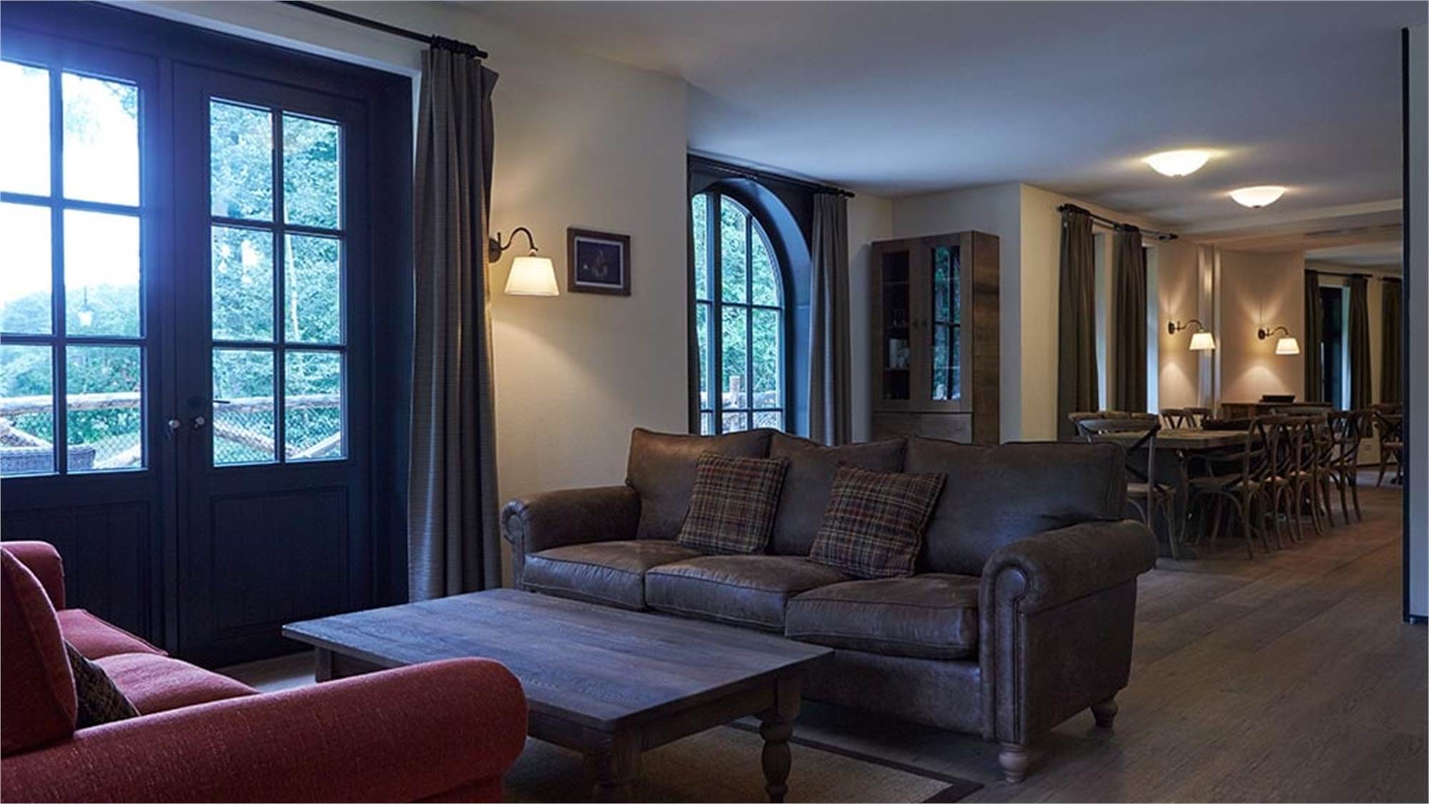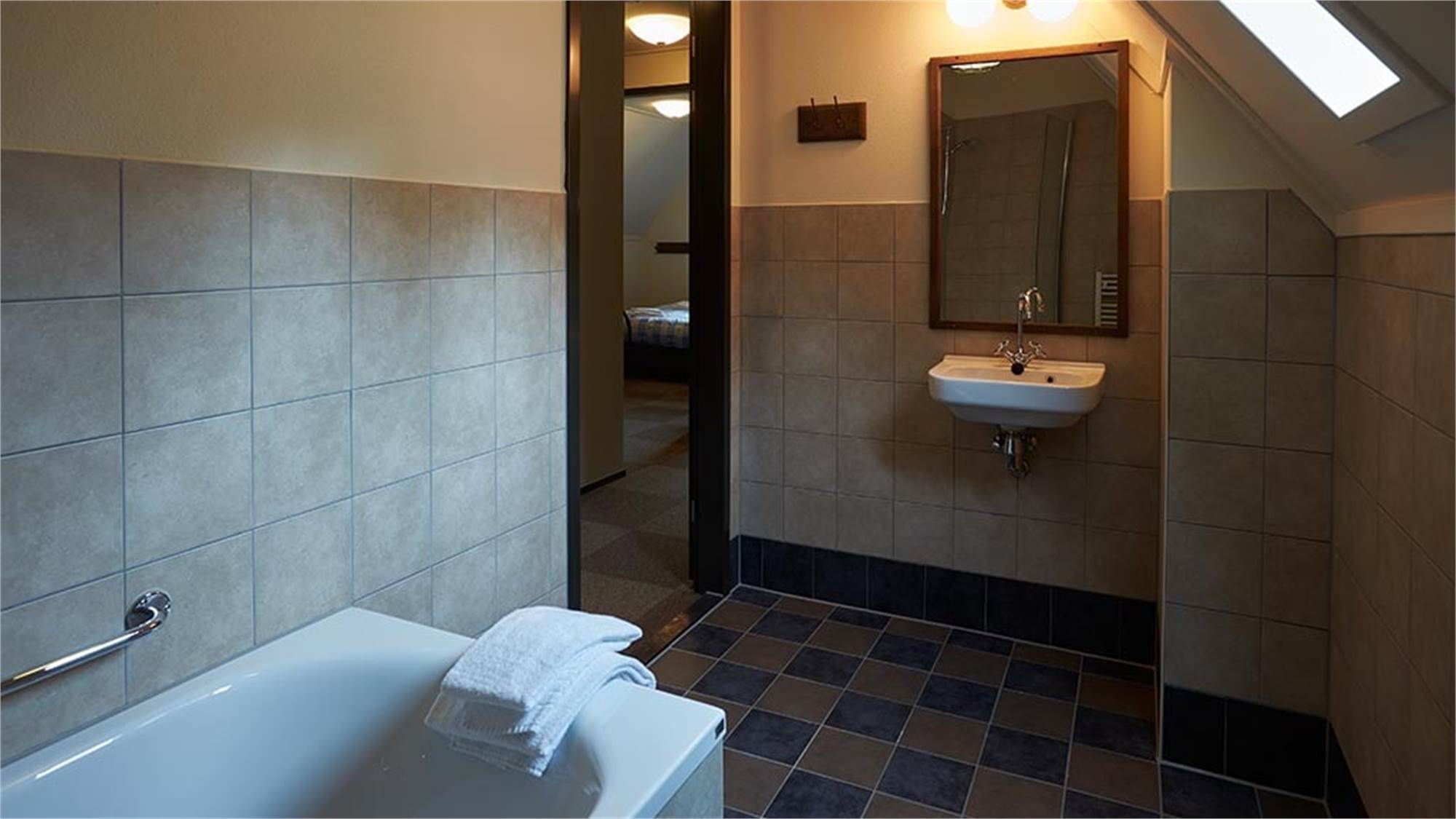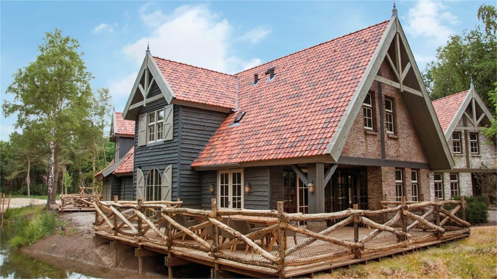 Dieses stimmungsvolle und geräumige Ferienhaus im Wald bietet jeden erdenklichen Komfort. Im Erdgeschoss verfügt es über ein geräumiges Wohnzimmer mit Küche, zwei Sitzbereichen und einer großen Essecke mit Zugang zur Terrasse. Darüber hinaus verfügt das Erdgeschoss über ein Schlafzimmer für 2 Personen mit angrenzendem Badezimmer mit Dusche. Die übrigen fünf Schlafzimmer sowie zwei Badezimmer, eines mit Badewanne und eines mit Dusche, erwarten dich im 1. Stock. Weiterhin befinden sich im Haus drei separate Toiletten.