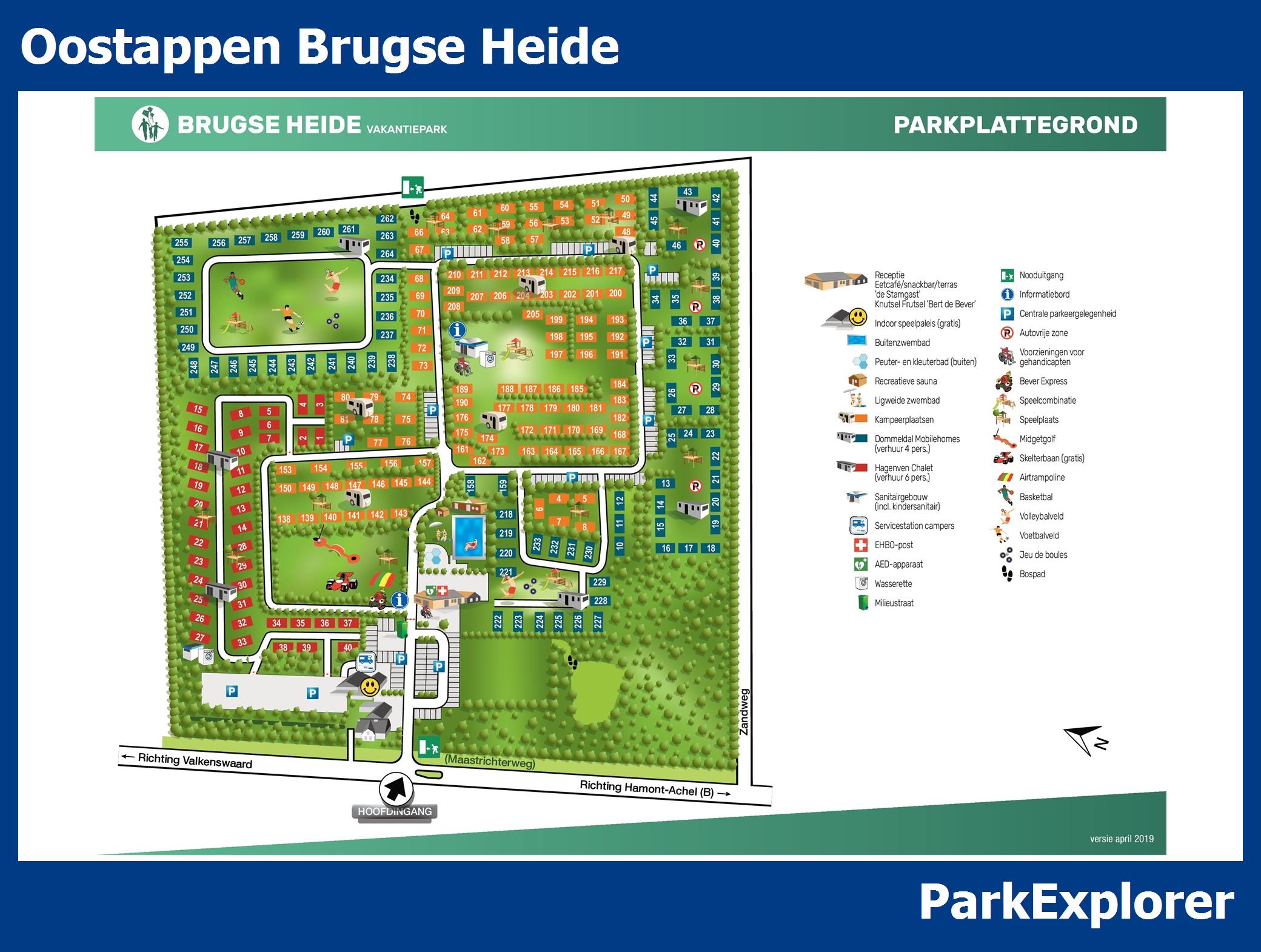 Aktueller und übersichtlicher Parkplan von Oostappen Brugse Heide mit alle Unterkünfte und Einrichtungen, auch als PDF herunterladbar.
