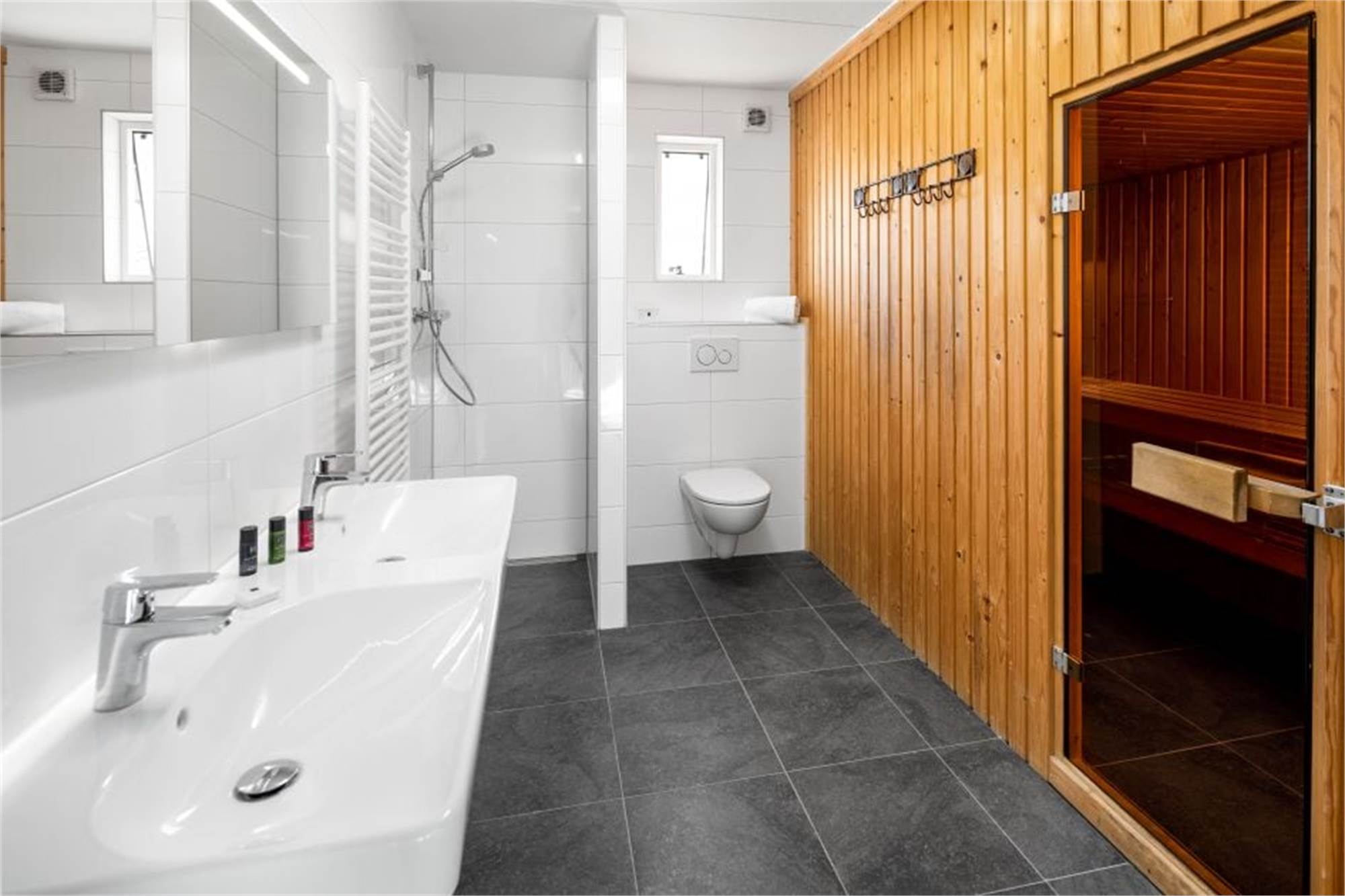 Diese komplett modernisierte Familienvilla eigent sich für 16 Personen und ist mit akke Annehmlichkeiten ausgestattet. Im Erdgeschoss finden Sie ein Wohnzimmer mit Smart-TV, eine luxuriöse Küche mit u. a. Geschirrspüler, 2 Kühlschränke und separatem Gefrierschrank und Backofen sowie 2 Schlafzimmer, ein Badezimmer mit Sauna und Dusche und eine separate Toilette. Im Obergeschoss finden Sie 6 weitere Schlafzimmer, eine separate Toilette und 2 Badezimmer.