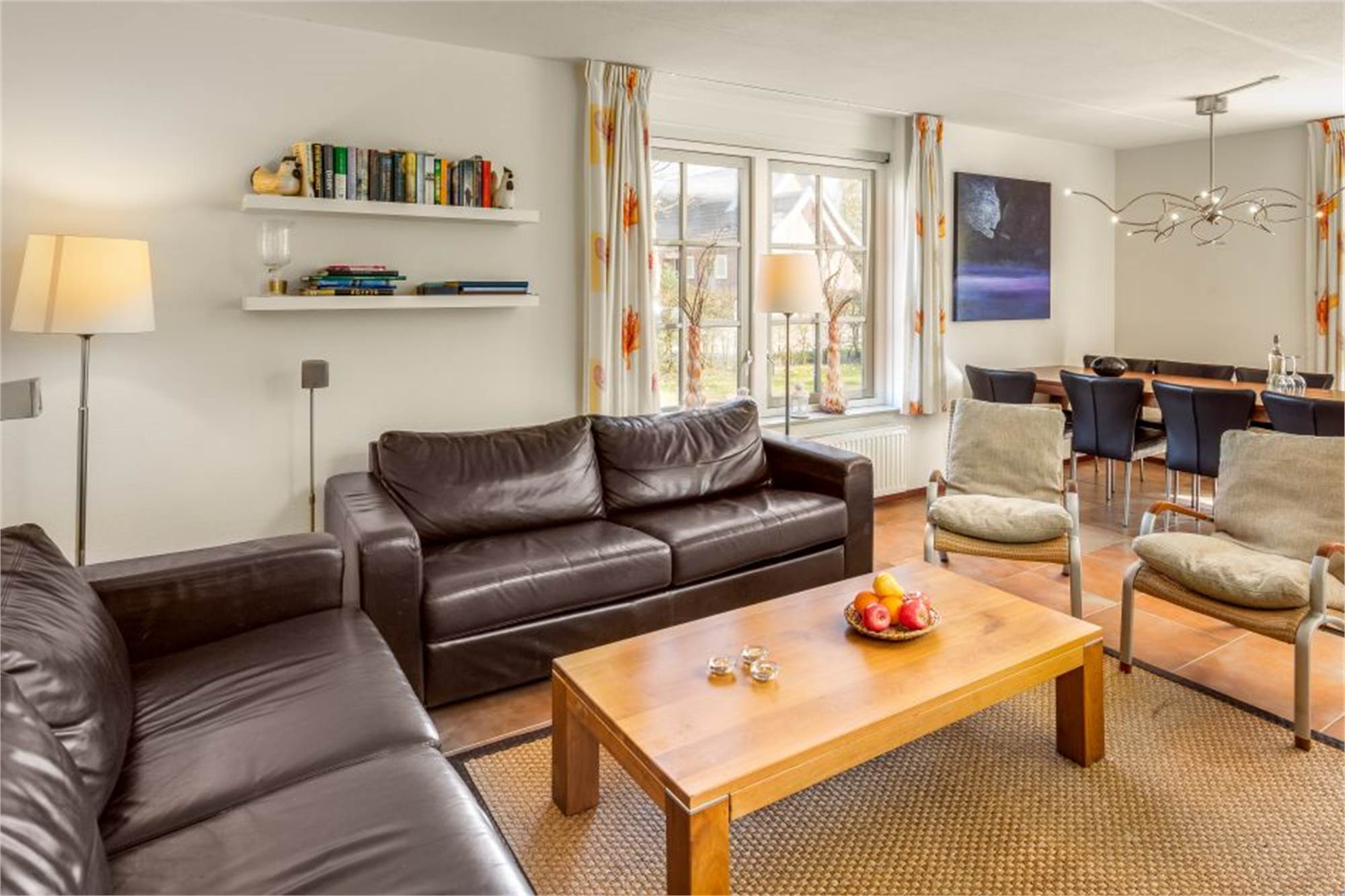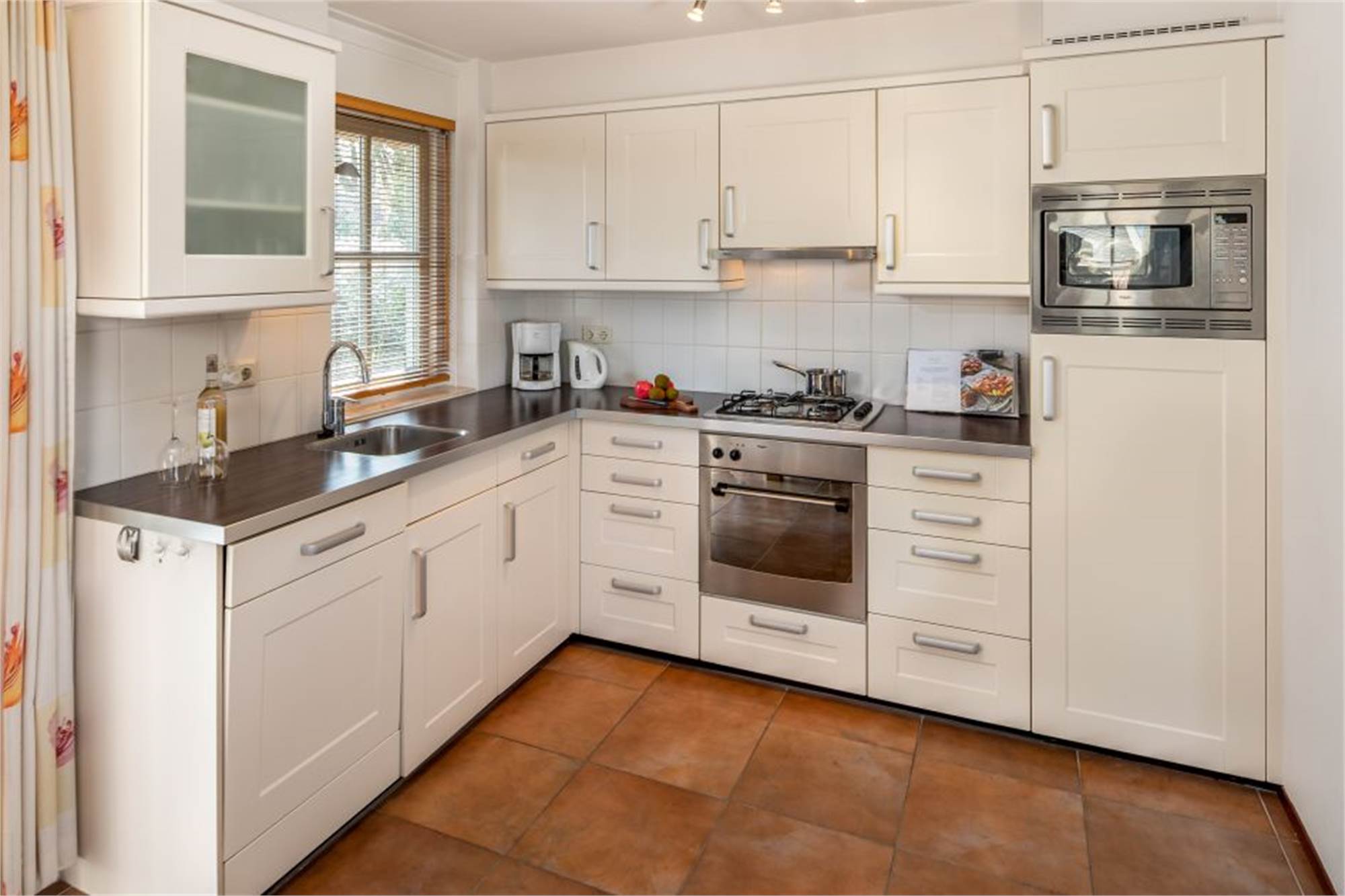 Villa für 8 Personen. In der offenen Küche finden Sie einen Geschirrspüler, eine Kombi-Mikrowelle sowie einen Kühlschrank mit Gefrierfach. Wohnzimmer mit Sitz- und Essecke, offene Küche und aufschlagende Türen zur Terrasse mit Gartenmöbeln.