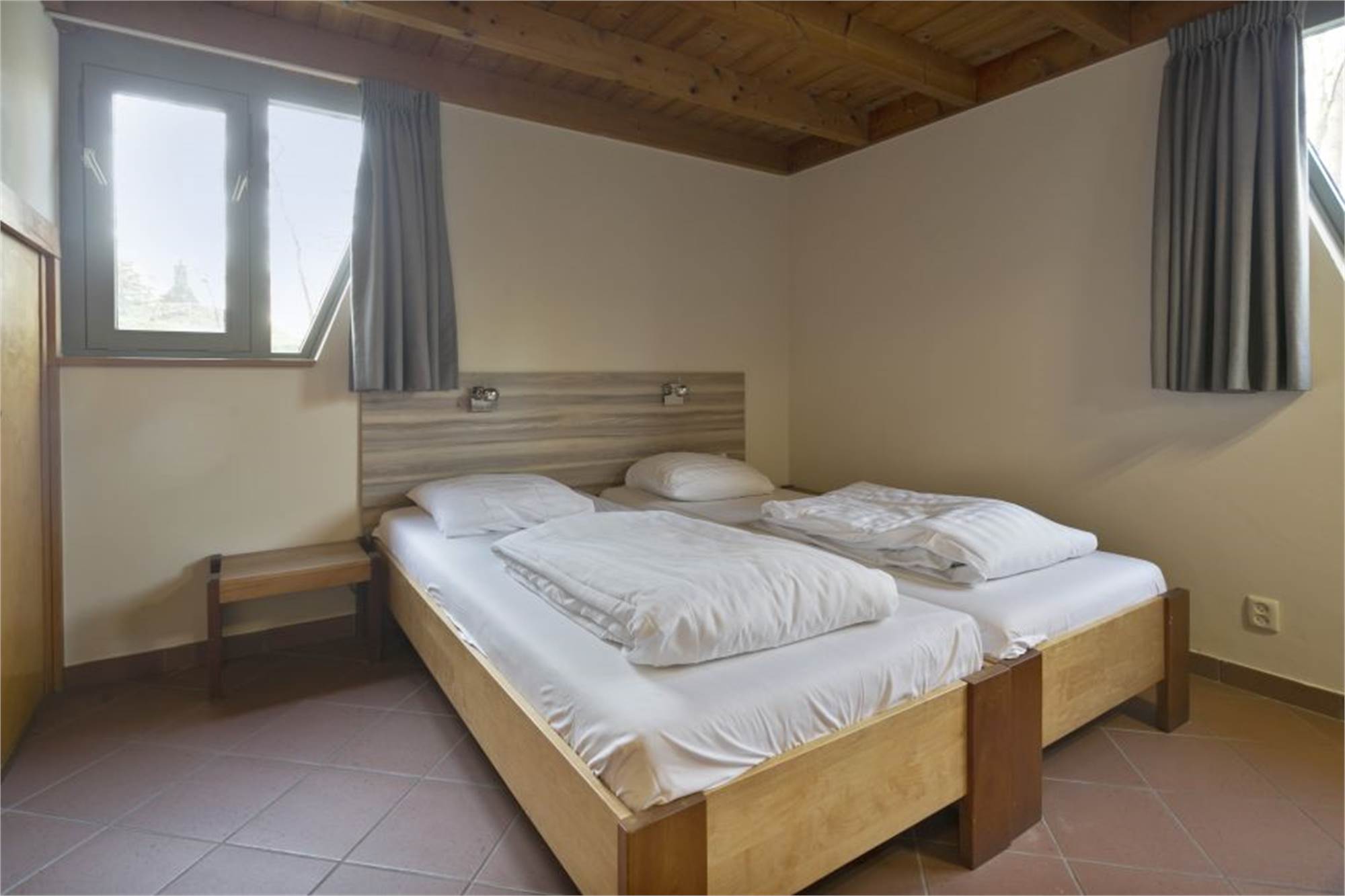 Kellergeschoss (über eine Treppe): Drei Schlafzimmer, davon eins mit Doppelbett und zwei mit je zwei Einzelbetten.