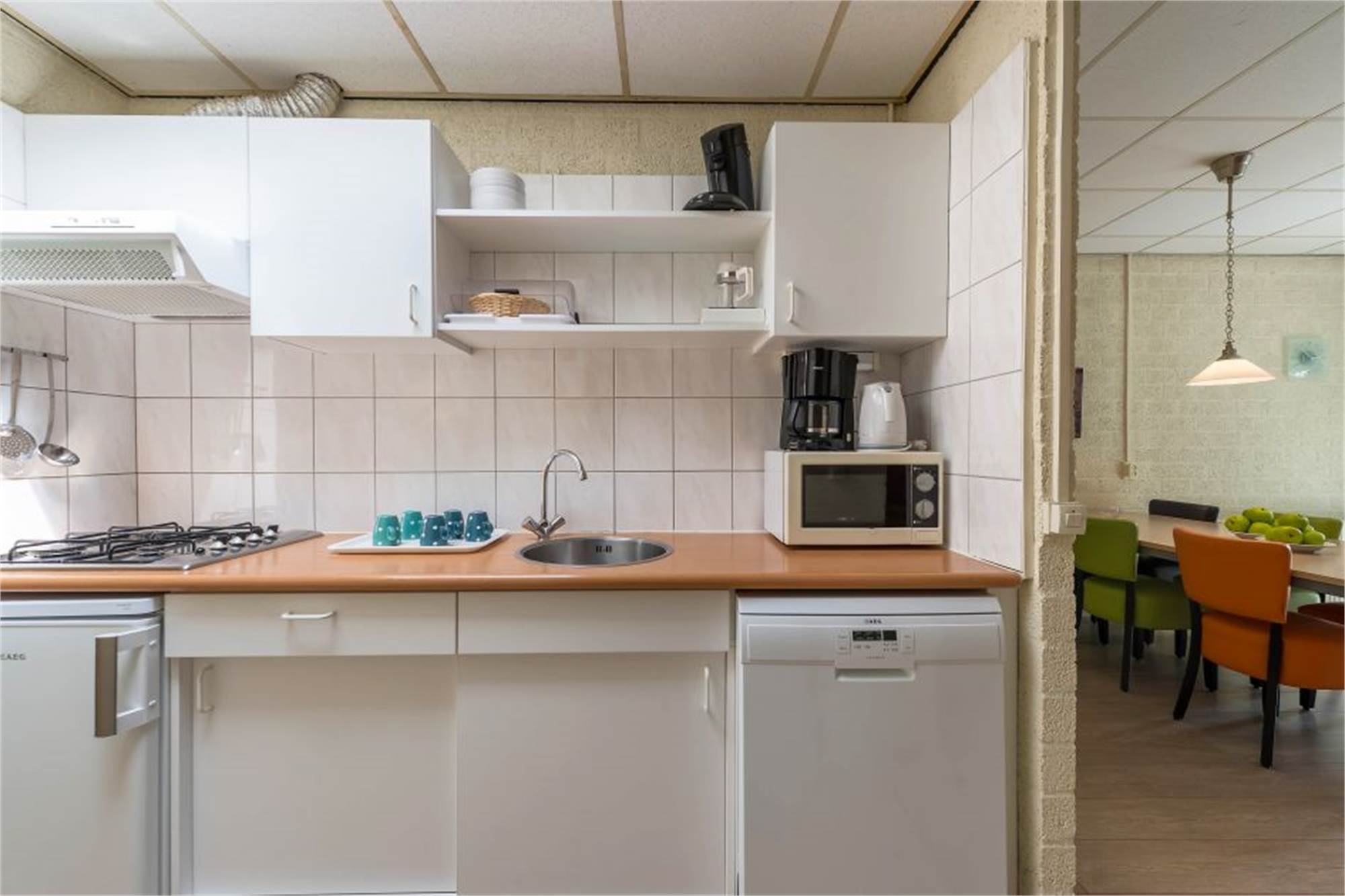 Einteilung: Wohnzimmer mit Flatscreen-TV, DVD-Player und HiFi-Anlage. Offene Küche mit Geschirrspüler, Kühlschrank, Mikrowelle und eine Kaffeepadmaschine. Drei Schlafzimmer, davon zwei mit zwei Einzelbetten und eins mit Etagenbett. Badezimmer mit Dusche und Toilette. Das Badezimmer von Typ Roos 6 Mindervalide ist behindertengerecht ausgestattet. Es gibt eine erhöhte Toilette, einen niedrigen Waschtisch und Haltegriffe an der Toilette und in der Dusche.