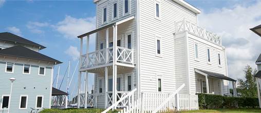 Freistehende Villa für 8 Personen. Im Erdgeschoss: Wohnzimmer und Küche. Im ersten Stock: 3 Schlafzimmer und 1 Badezimmer mit Badewanne. Im oberen Stock: 1 Schlafzimmer mit Badezimmer und Sauna.
