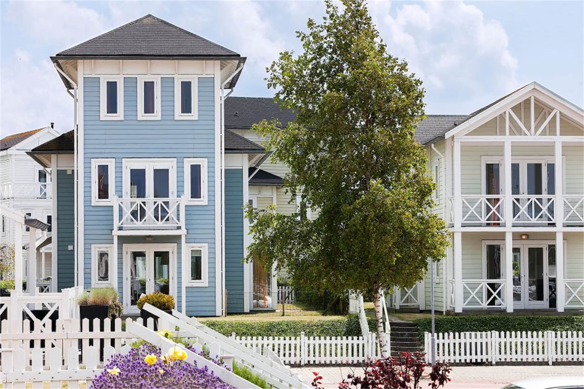 Freistehende Villa für 8 Personen. Diese Villa bietet ein großes Wohnzimmer mit Fußbodenheizung sowie eine luxuriöse Küche mit u. a. Geschirrspüler, Kühlschrank mit Gefrierfach und Mikrowelle. Im ersten Obergeschoss befinden sich 3 Schlafzimmer und ein Badezimmer mit Badewanne. Im zweiten Obergeschoss finden Sie das vierte Schlafzimmer mit eigenem Badezimmer und Infrarotsauna. Die Villa verfügt außerdem über eine möblierte Terrasse, eine Veranda und zwei Sonnenliegen. Die Nutzung von WiFi ist gratis.