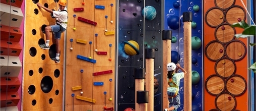 Das sollten Sie auf jeden Fall versuchen: Gesichert die Kletterwand in der Action Factory bezwingen! Sie können verschiedene Schwierigkeitsstufen wählen.