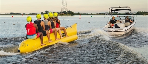 Nichts macht den Kleinen mehr Spaß, als mit einem Bananenboot zu fahren. Die Eltern können sie dabei mit einem Kanu oder einem Tretboot begleiten.