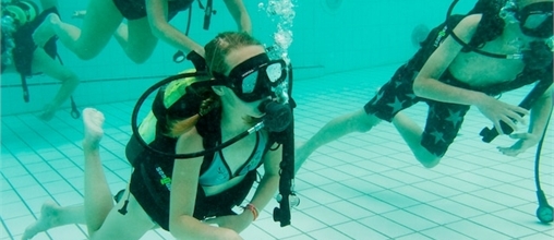 Inbegriffen: einstündiger Kennenlernunterricht im Aqua Mundo, Theorieunterricht für Kinder, Probetauchen für Kinder, Tolle Fahrt mit einem Unterwasserscooter, Wasserspiele, Unterwassertour und Teilnahmeurkunde.