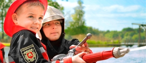 Der absolute Traum aller kleine Kinder wird jetzt Wirklichkeit! Sie düsen in einem Feuerwehrauto mit heulenden Sirenen los, um ein echtes Feuer zu löschen.