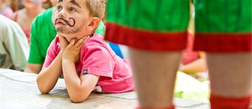 Voller Spannung warten die Kinder, bis der Vorhang des Puppentheaters sich öffnet. Und dann beginnt die Geschichte. Die Kinder sind voller Begeisterung dabei und machen lauthals mit.
