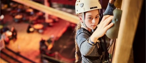 Das sollten Sie auf jeden Fall versuchen: Gesichert die Kletterwand bezwingen! Sie können verschiedene Schwierigkeitsstufen wählen.