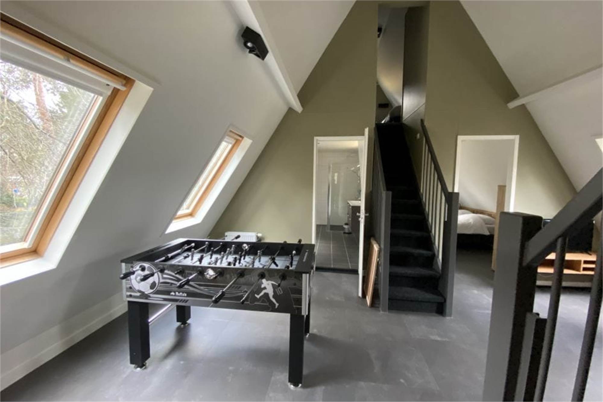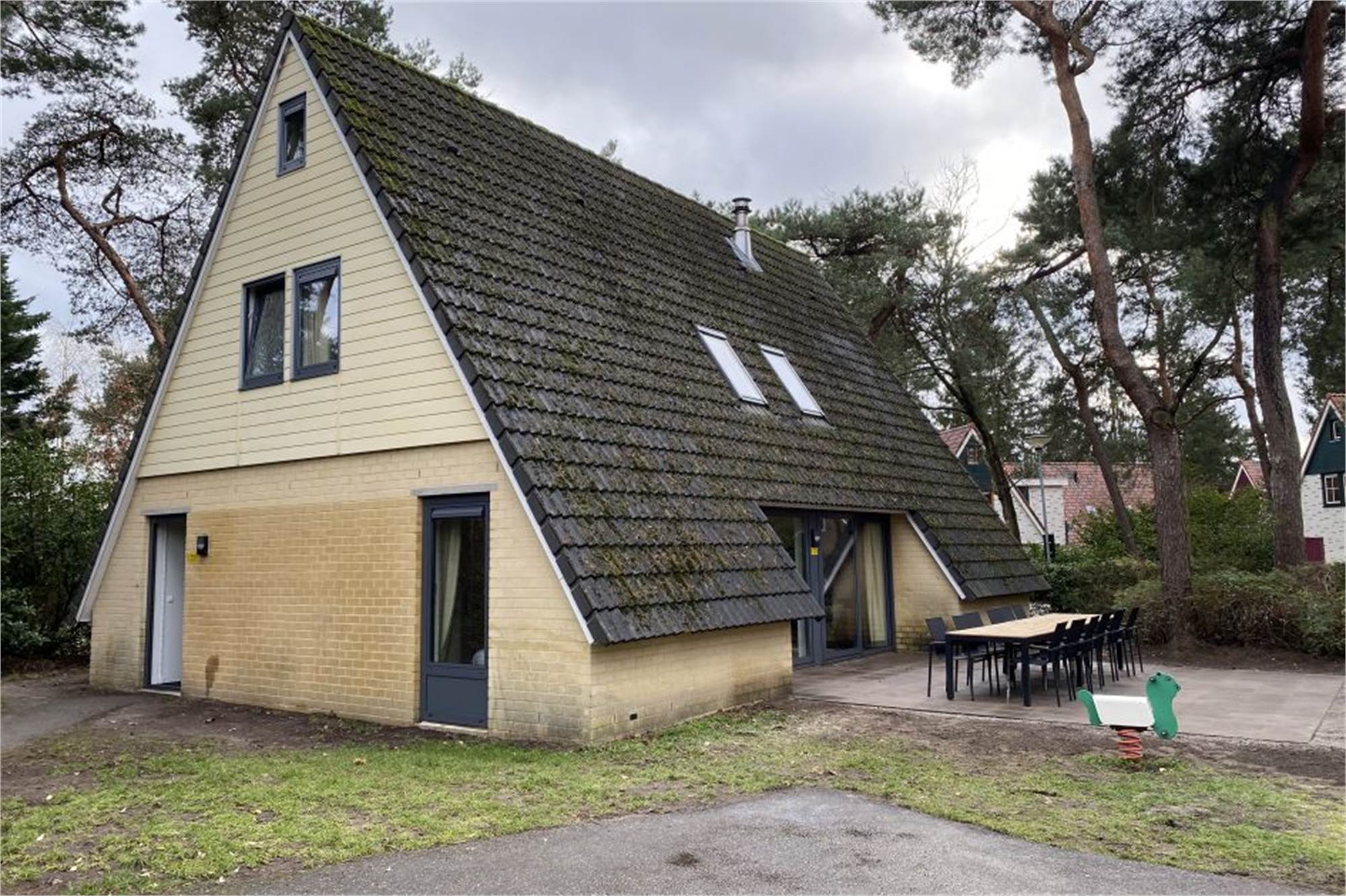 Dieser freistehende Villa mit Obergeschoss ist für 12 Personen geeignet. Das Wohnzimmer hat eine Sitzecke mit Chromecast TV. Die Küche verfügt über zwei Kühlschränke, einen Geschirrspüler, eine Filterkaffe- sowie eine Kaffeepadmaschine sowie eine Kombi-Mikrowelle. Im Erdgeschloss gibt es 1 separate Toilette. Außerdem gibt es 2 Schlafzimmer und 2 Badezimmer mit Dusche und Toilette. Im Obergeschoss befinden sich die anderen 4 Schlafzimmer, wie im Erdgeschoss jeweils mit 2 Einzelbetten. Außerdem gibt es 2 Badezimmer mit einer Toilette sowie Dusche oder Badewanne. Auf dem Treppenabsatz befinden sich ein Tischfußballspiel und ein Heimkino mit Sitzecke.