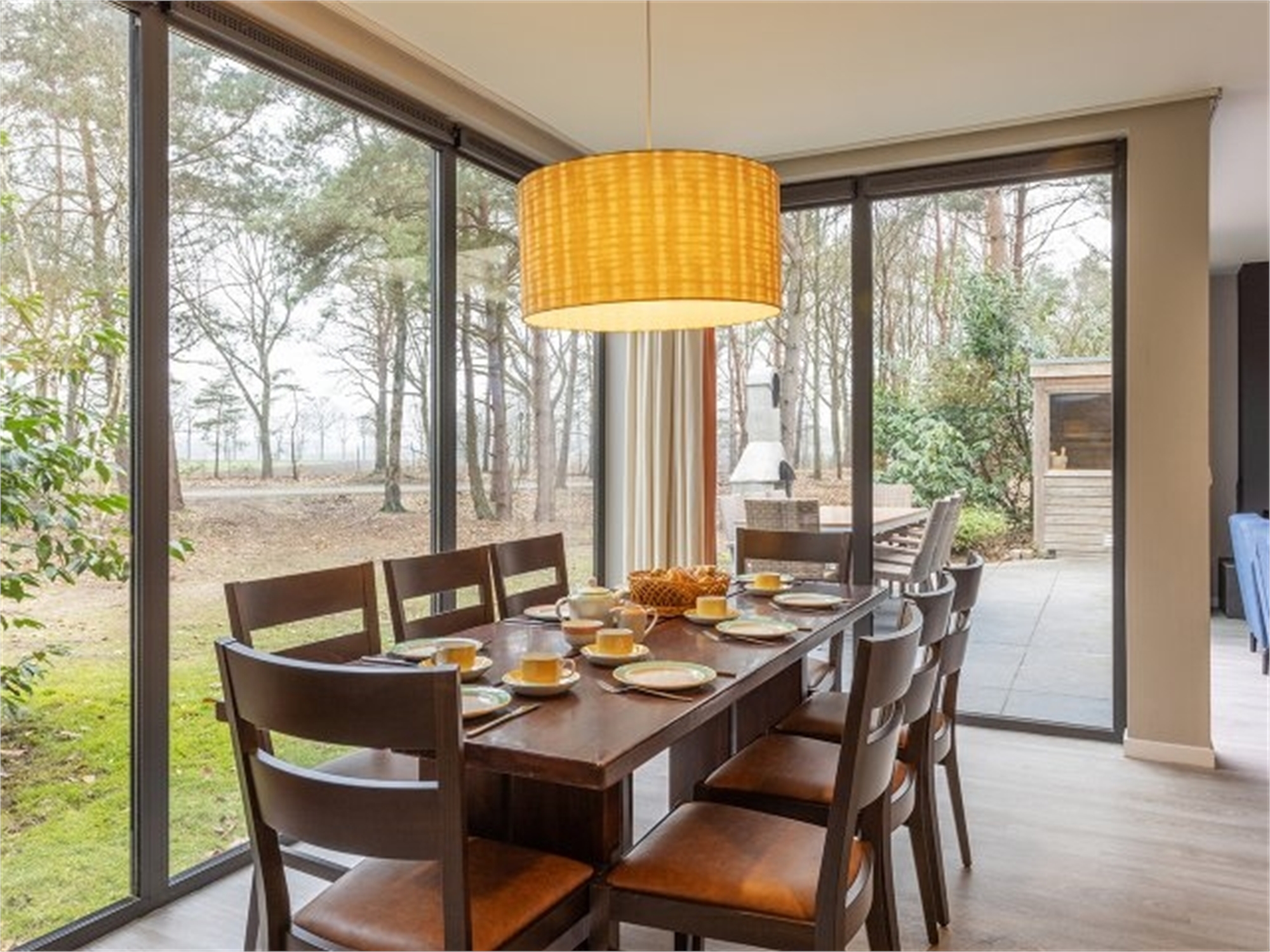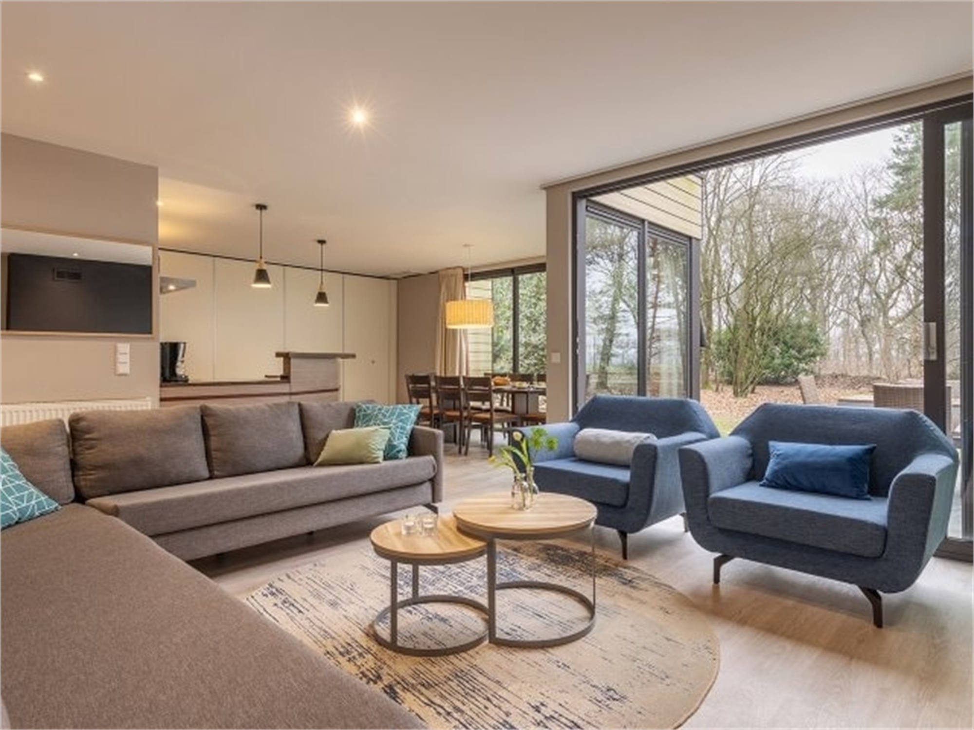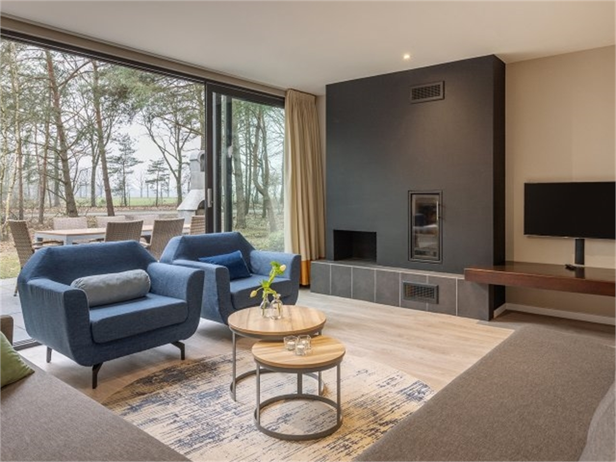 Durch die große Schiebetür wird Ihr Eden-Ferienhaus mit Sonnenlicht durchflutet. Öffnen Sie die Tür - und ihr Wohnzimmer verschmilzt mit dem Garten. Ein Traum! Genießen Sie den großzügigen Freiraum und den Komfort. Entspannen Sie am Kamin und werfen Sie den Grill an - für einen langen Sommerabend.