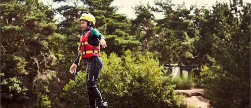 Sie stehen auf einer Art Mini-Surfbrett, das mit einem Wasserscooter verbunden ist. Sobald der Lehrer auf dem Wasserscooter Gas gibt, wird das Flyboard in die Luft getragen. Schnell erlangen Sie mehr Geschicklichkeit und können wie ein Delfin durch das Wasser ziehen.