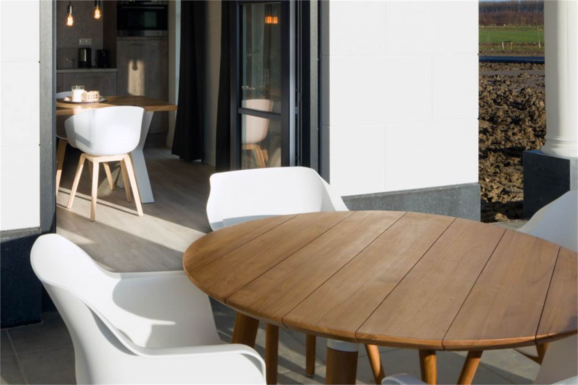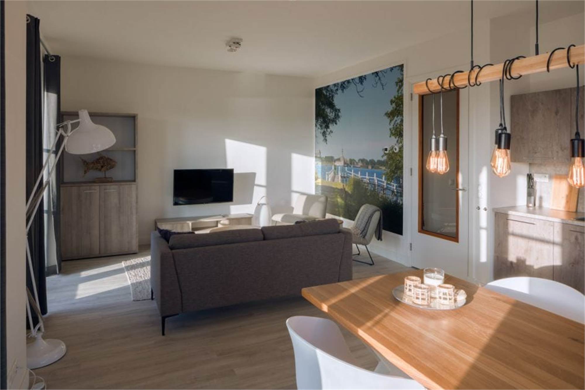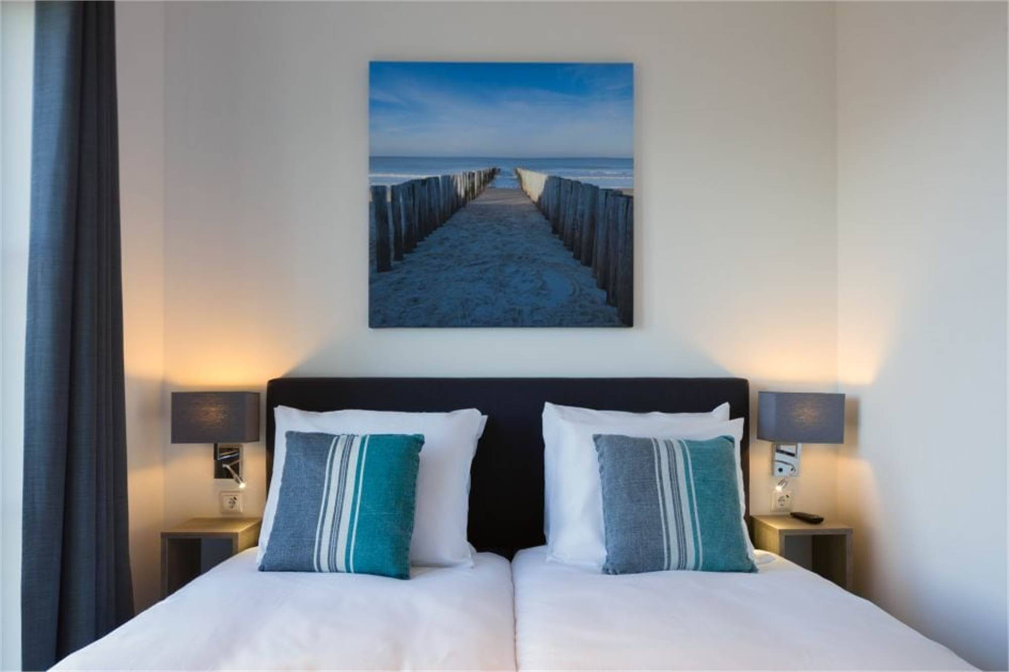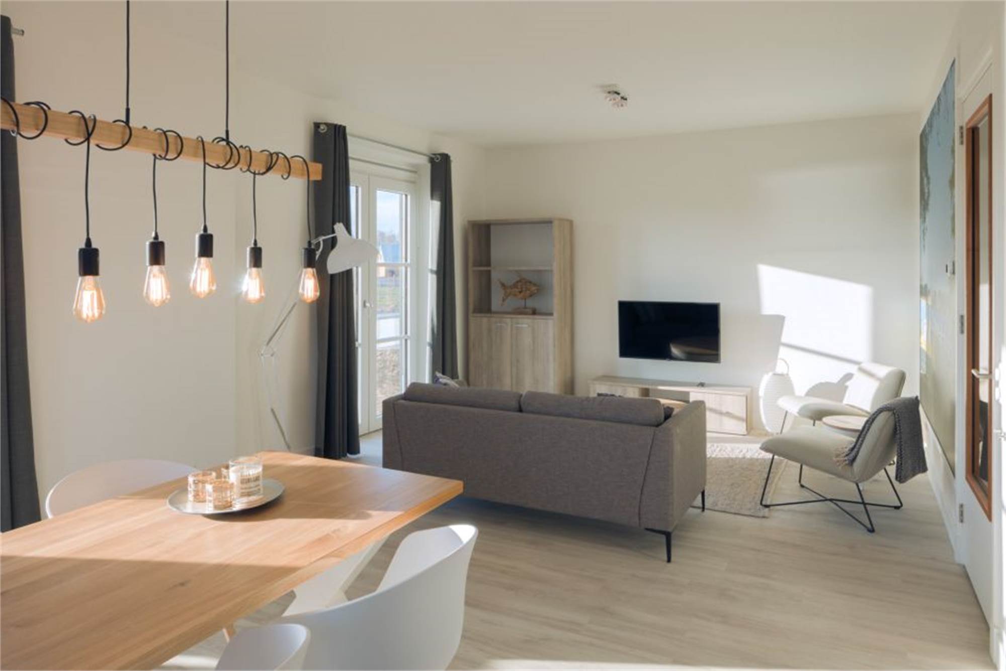Dieses ebenerdige Appartement liegt im Erdgeschoss und eignet sich für 4 Personen. Das Wohnzimmer verfügt über eine Sitzecke mit Smart-TV und grenzt an die offene Küche mit Essecke. In der Küche befinden sich unter anderem eine Geschirrspülmaschine, eine Kombi-Mikrowelle und eine Kaffeepadmaschine. Es sind 2 Schlafzimmer mit jeweils 2 Einzelbetten sowie ein Badezimmer en suite vorhanden. Beide Badezimmer verfügen über eine bodengleiche Regendusche, 1 verfügt zudem über eine eigene Toilette. Die zweite Toilette ist separat und befindet sich im Flur. Außerdem finden Sie hier den Abstellraum mit Waschmaschine und Trockner. Das Appartement besitzt eine überdachte Veranda mit Gartenmobiliar, einen eigenen Garten und einen zentralen Parkplatz in nächster Nähe. Sie können kostenlos das WiFi nutzen.