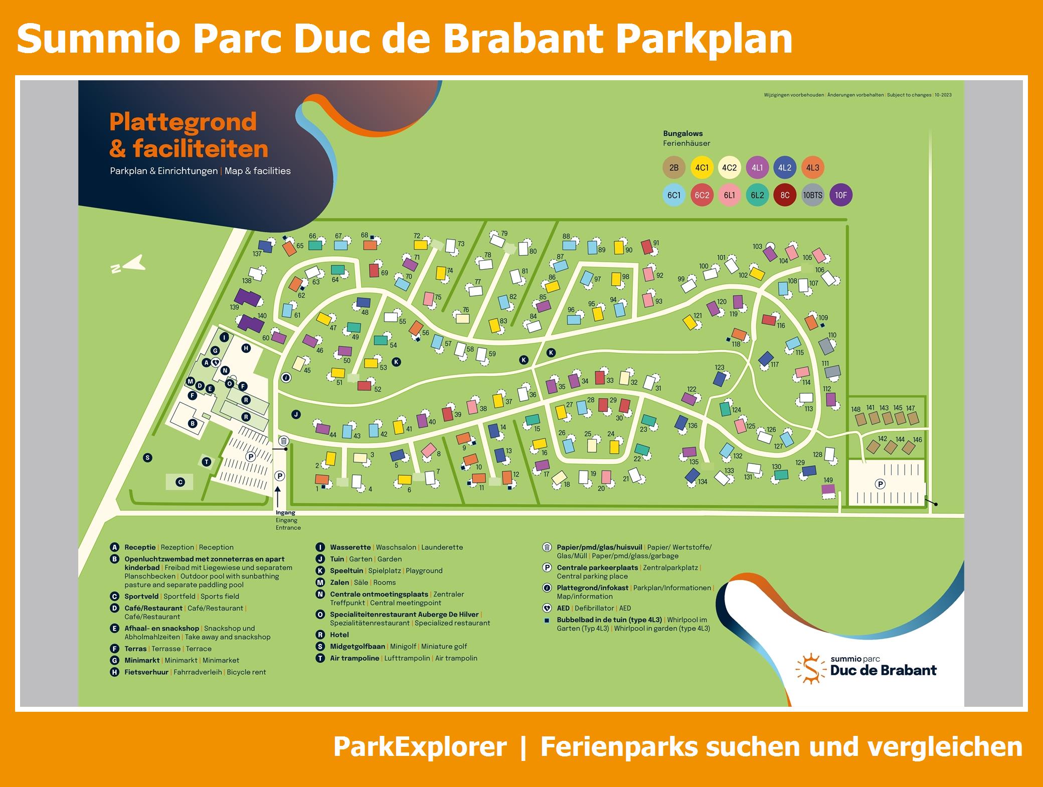 Aktueller und übersichtlicher Parkplan von Summio Parc Duc de Brabant mit alle Unterkünfte und Einrichtungen, auch als PDF herunterladbar.