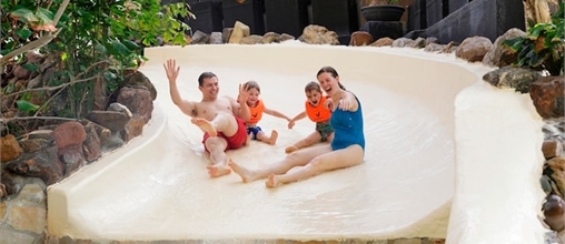 Es ist nicht die längste Rutsche im Aqua Mundo, aber eine der unterhaltsamsten. Auf den Knien, superschnell oder alle zusammen in einer Reihe?