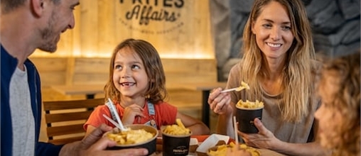 Lust auf einen schnellen Snack? Bei Frites Affairs gibt's frische Pommes, Burger & Top-Snacks. Kids lieben die Überraschungsbox - und gönn dir ein Eis, du bist schließlich im Urlaub!
