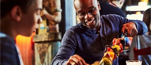 Speise bei flackerndem Feuer und antiken Wandmalereien. Genieße Fisch, Fleisch, Veggie-Gerichte oder stell dir deinen Burger in 5 Schritten selbst zusammen - wie im Tempel des Geschmacks!