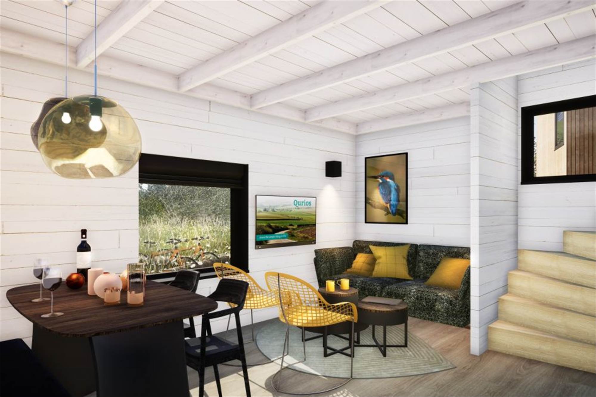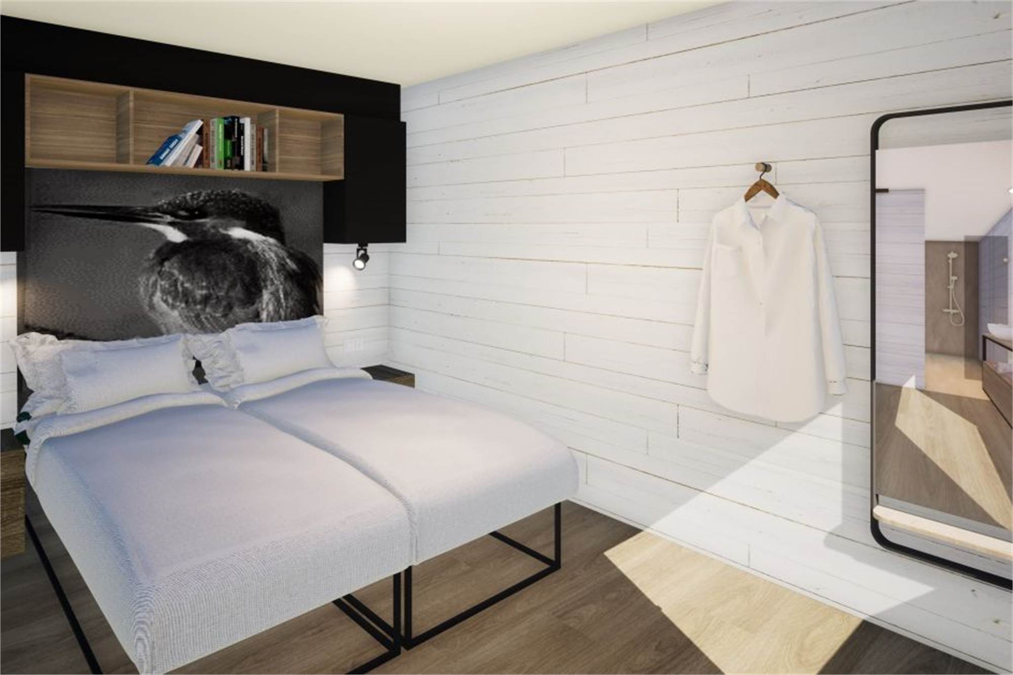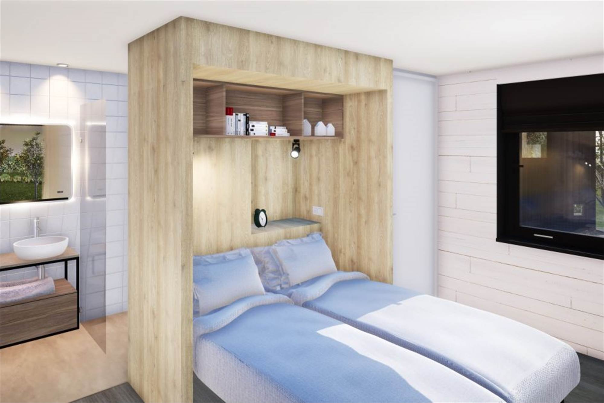 Diese freistehende, ebenerdige Lodge eignet sich für 4 Erwachsene und 1 Baby. Die Lodge hat 3 Stockwerke. Das Wohnzimmer ist mit einer Sitzecke, einer Essecke, einem Fernseher und Fußbodenheizung ausgestattet. Die offene Küche verfügt über einen Geschirrspüler, eine Kaffeekapselmaschine, einen Wasserkocher, eine Kombi-Mikrowelle und eine Kühlgefrierkombination. Im ersten Stockwerk befindet sich 1 Schlafzimmer mit 2 Einzelbetten und einem angeschlossenen Badezimmer mit begehbarer Regendusche und Fußbodenheizung. Im zweiten Stockwerk befindet sich ein weiteres Schlafzimmer mit 2 Einzelbetten und einem angeschlossenen Badezimmer mit begehbarer Regendusche und Fußbodenheizung. Die Betten sind mit einer Länge von 210 cm extra lang ausgeführt. Eine separate Toilette ist vorhanden. Die Lodge ist mit einem Garten mit Terrasse und Gartenmöbeln ausgestattet. Parkmöglichkeiten befinden sich auf dem zentralen Parkplatz. Es steht kostenloses WiFi zur Verfügung.