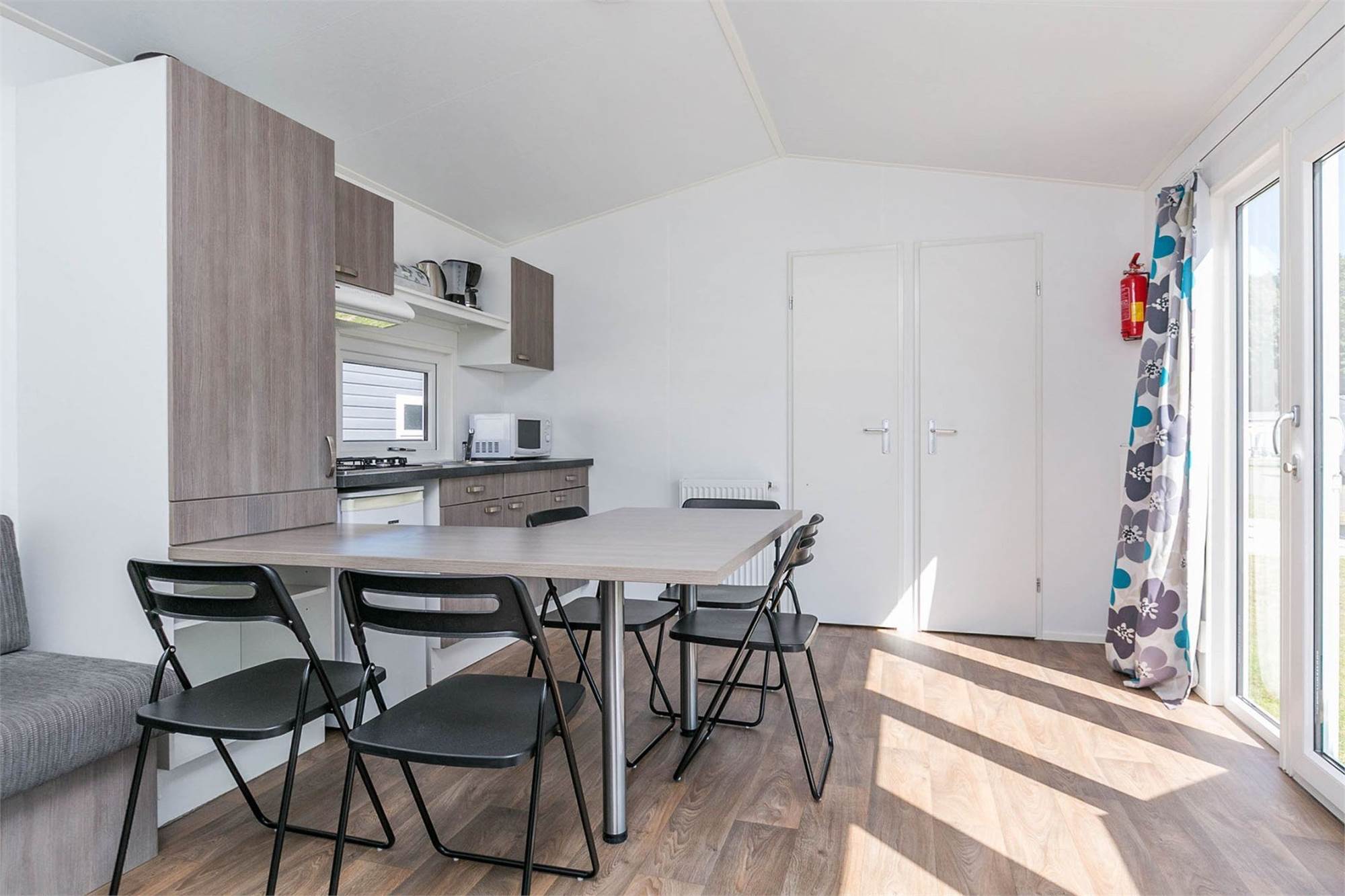 Mitten auf den Bäumen oder an einem Ort mit viel Sonne? Ihr Chalet befindet sich immer in einem schönen Teil des Campings. Geräumig und etwas luxuriöser als die Mobilheime. Die Chalets sind in vielen verschiedenen Ausführungen auf fast allen Parks zu finden. Eine geräumige Terrasse mit Möbeln und Sonnenschirm der Oostappen-Gruppe, ein geräumiges möbliertes Wohnzimmer mit TV und Herd oder Zentralheizung, Küche mit Kühlschrank, Mikrowelle, Kaffeemaschine, 4-Flammen-Herd und Küchenausstattung. Und natürlich auch ein Badezimmer mit Dusche, Waschbecken und WC.