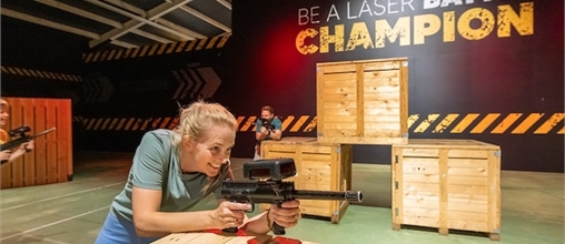 Trommeln Sie Ihre Familie zusammen, und bereiten Sie sich auf den Indoor Family Laser Battle-Wettstreit vor. Die Aufgabe: Erobern Sie die feindliche Flagge. Aber passen Sie auf, dass Sie nicht von den Laserstrahlen der anderen getroffen werden!