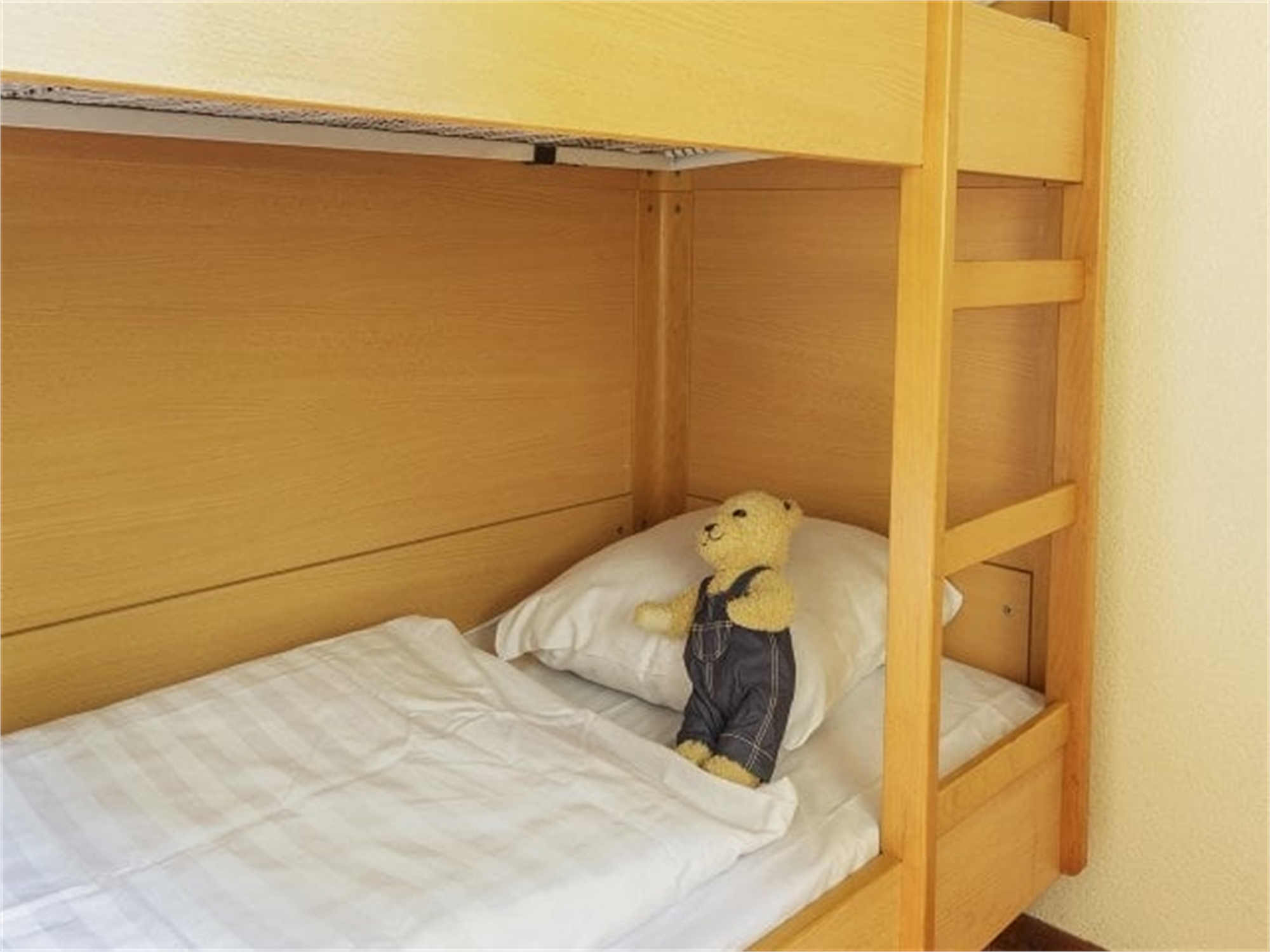 3 Schlafzimmer: 2 mit je 2 zusammenstehenden Einzelbetten, 1 mit Etagenbett (1,90 m), zweiter Fernseher, Bettdecken