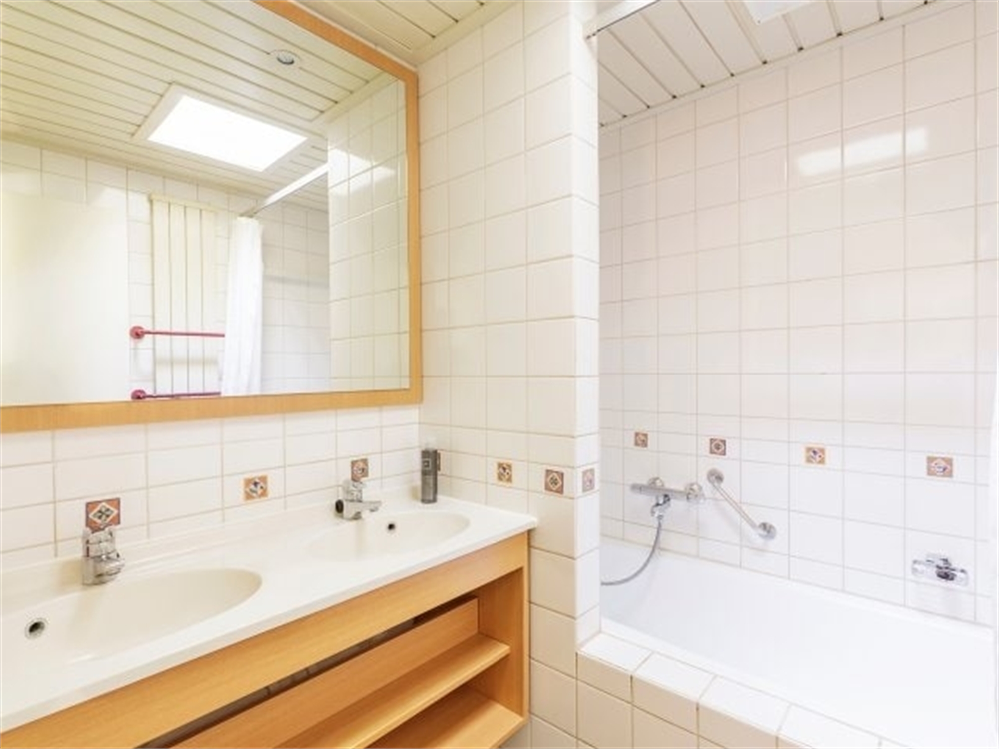 Bad mit Wanne und Doppelwaschbecken, separates WC, Föhn