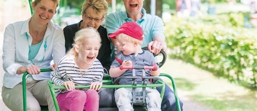Bereit für ein echtes Fahrradabenteuer mit der ganzen Familie? Nehmen Sie Platz auf dem Family Bike: die Kinder auf den vorderen Sitzen und die Erwachsene hinten an den Pedalen. Entdecken Sie alle Wege und kleinen Straßen des Parks unter der Anleitung der Kinder, die Piloten spielen.
