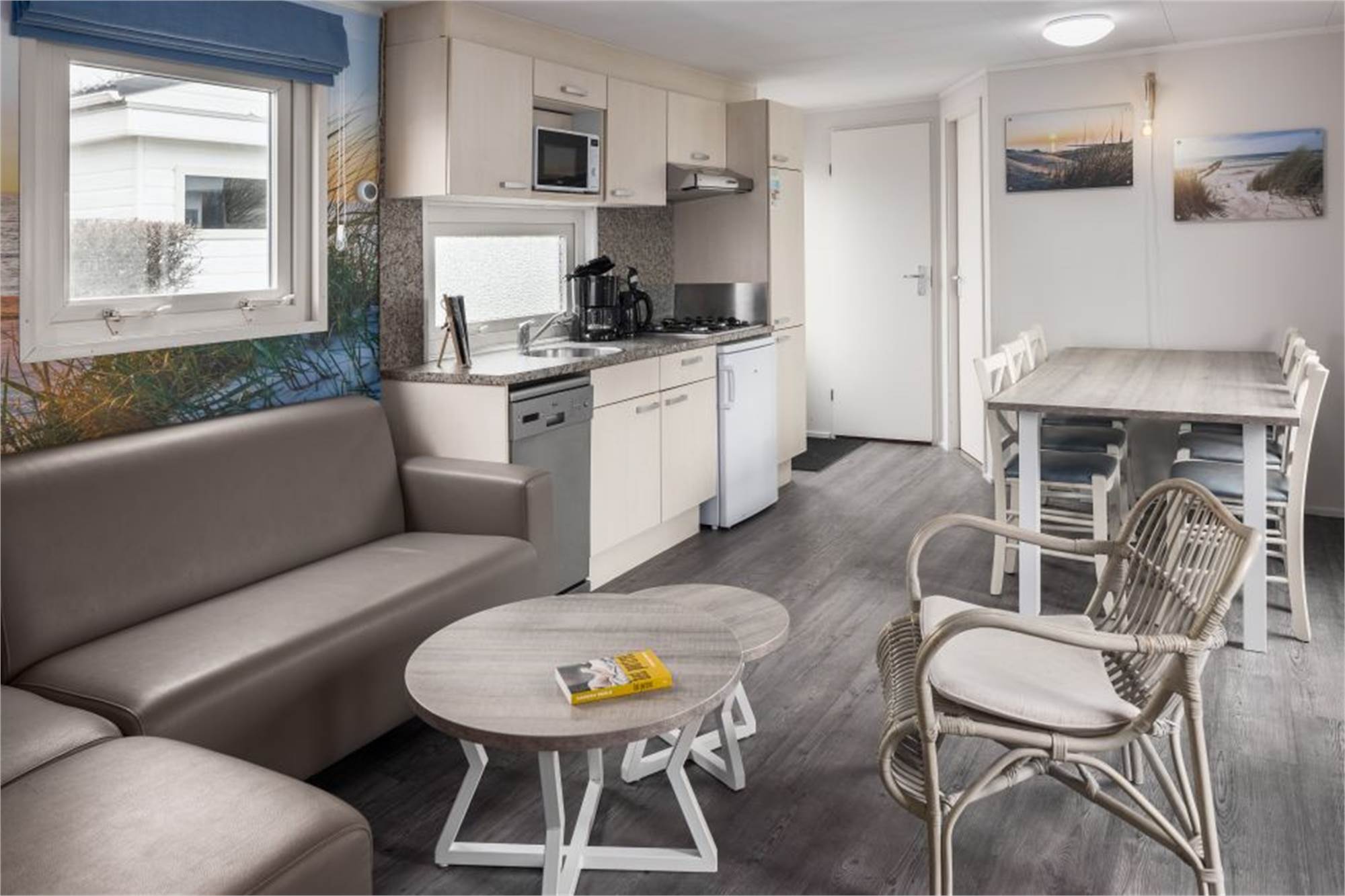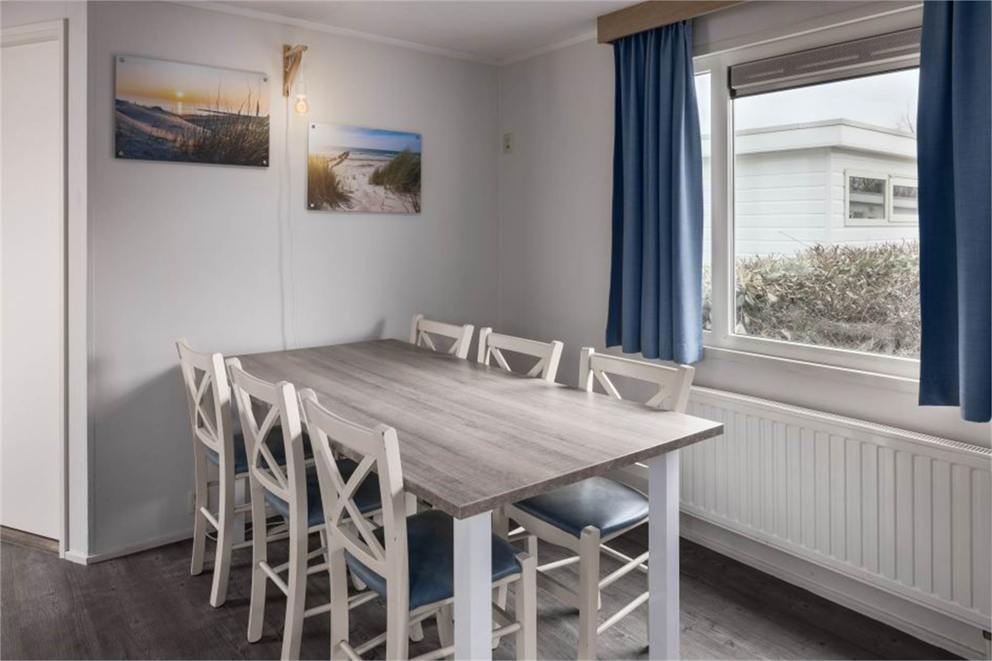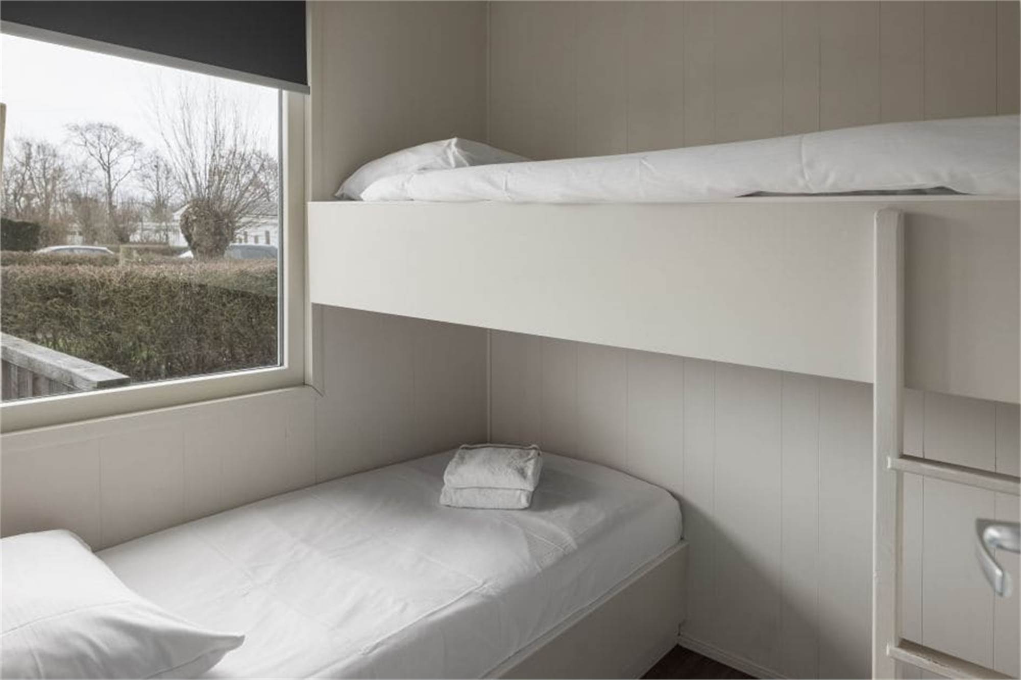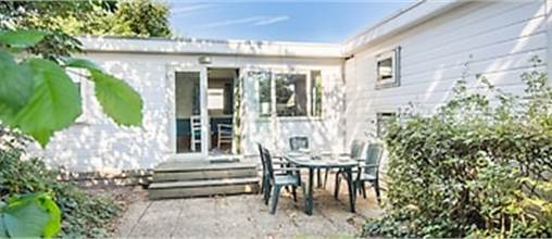 Dieses ebenerdige Chalet eignet sich für 6 Personen. Die Unterkunft bietet ein freundlich eingerichtetes Wohnzimmer mit gemütlicher Sitzecke und TV-Gerät. Die offene Küche ist u. a. mit Geschirrspüler, Mikrowelle und Filterkaffeemaschine ausgestattet. Darüber hinaus verfügt das Chalet über 3 Schlafzimmer, davon zwei mit Etagenbetten und eins mit zwei Einzelbetten. Außerdem gibt es ein Badezimmer mit Dusche und Toilette und im Außenbereich einen Garten mit möblierter Terrasse.