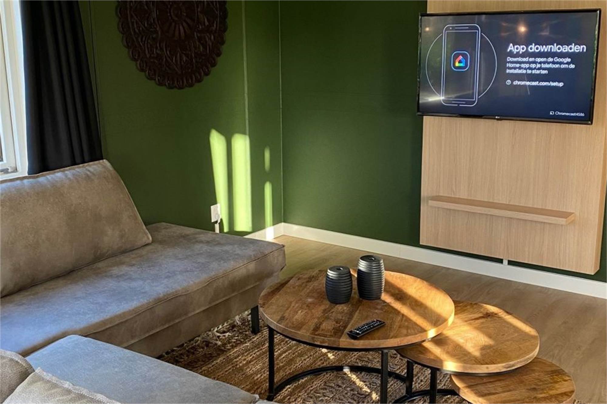 Dieses freistehende, ebenerdige Chalet ist für 4 Personen geeignet und bietet seinen Bewohnern ein Wohnzimmer mit einer Sitzecke. Der Fernseher hat einen Chromecast. Damit kannst du Apps von deinem Telefon oder Tablet wie Netflix, YouTube und Spotify direkt auf dem Bildschirm des Fernsehers ansehen. In der Küche findest du unter anderem eine Geschirrspülmaschine, eine Kaffeepadmaschine, eine Kombi-Mikrowelle und einen Kühlschrank mit Gefrierfach. Es gibt 2 Schlafzimmer mit jeweils 2 Einzelbetten. Das Badezimmer verfügt über eine bodengleiche Regendusche und eine Badewanne. Eine separate Toilette befindet sich im Flur. Der Garten ist eingezäunt und umfasst eine Veranda und eine Terrasse. Du kannst in der Nähe der Ferienunterkunft parken und kostenlos WiFi benutzen.