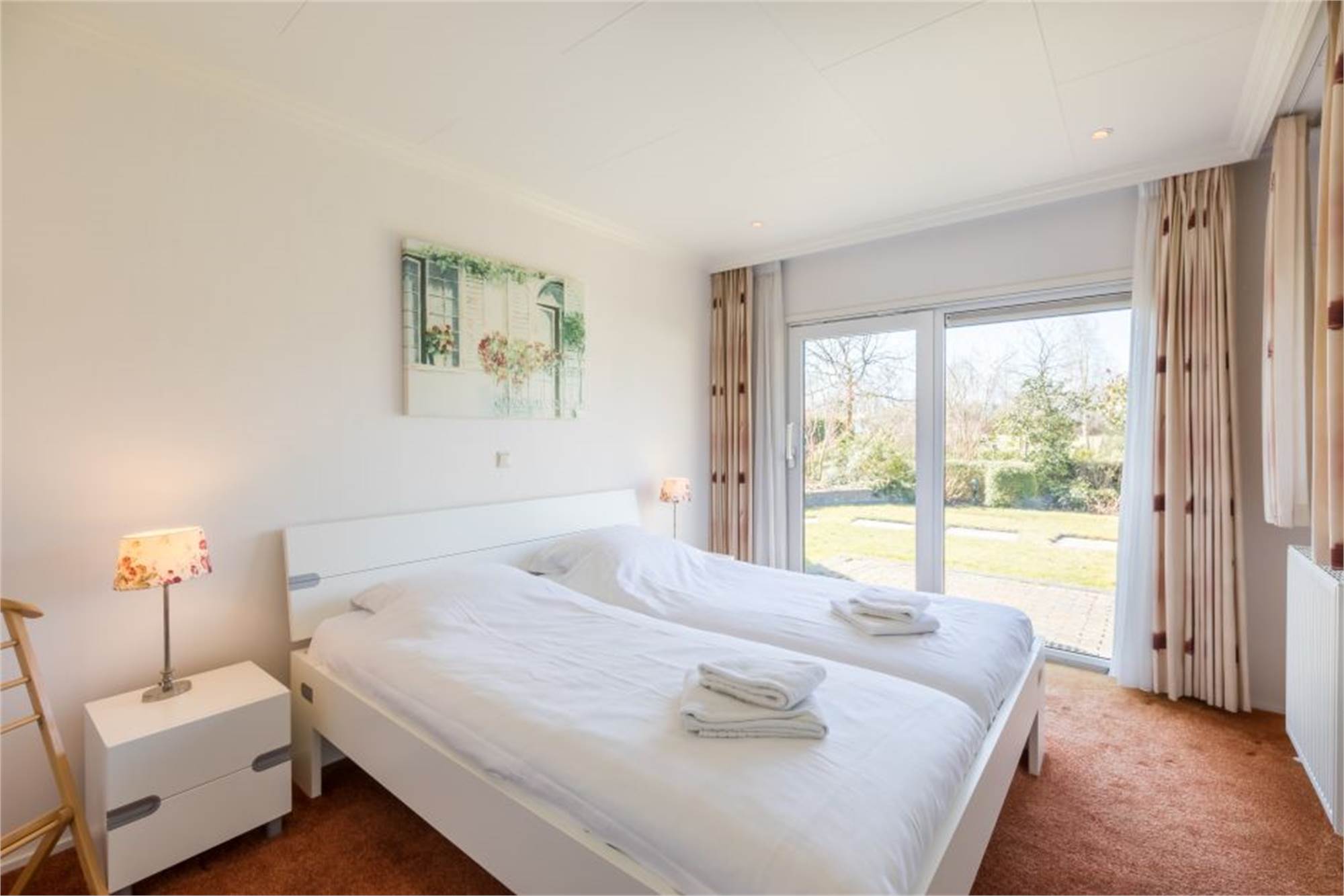 Diese freistehende Villa mit einer Etage ist für 4 Personen geeignet. Im Wohnzimmer mit Sitzecke befindet sich ein Fernseher und in der offenen Küche findest Du unter anderem einen Geschirrspüler, eine Kombi-Mikrowelle und einen Kühlschrank mit Gefrierfach. Es gibt sowohl eine Kaffeepadmaschine als auch eine Filterkaffeemaschine. Das Badezimmer befindet sich ebenfalls im Erdgeschoss und ist mit einer Dusche und einer Badewanne ausgestattet. Es stehen insgesamt 2 Schlafzimmer zur Verfügung; davon ist 1 mit einem Doppelbett und 1 mit 2 Einzelbetten ausgestattet. In der Villa mit der Nummer 31 befinden sich beide Schlafzimmer auf der ersten Etage; in der Villa mit der Nummer 84 befindet sich eines der Schlafzimmer im Erdgeschoss. Der Garten verfügt über eine Terrasse mit Gartenmöbeln und neben der Villa befindet sich ein Parkplatz für 1 Auto. Du kannst kostenloses WiFi nutzen.