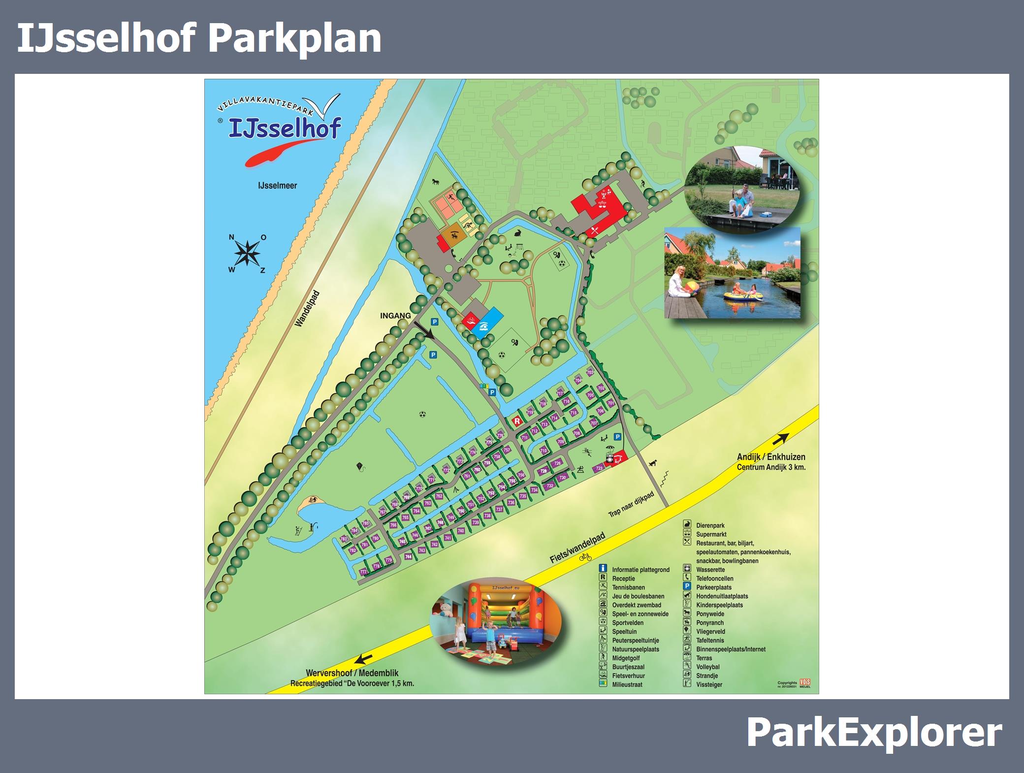 Aktueller und übersichtlicher Parkplan von IJsselhof mit alle Unterkünfte und Einrichtungen, auch als PDF herunterladbar.