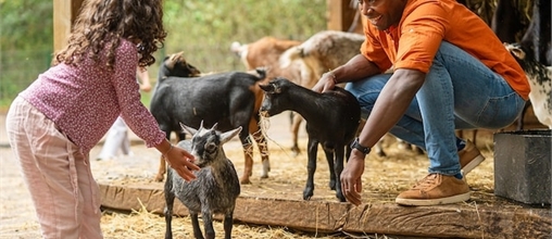 Besuchen Sie gemeinsam die Tiere im Streichelzoo. Hier gibt es unter anderem Kaninchen, Ziegen und andere Tiere, die es lieben, gestreichelt zu werden