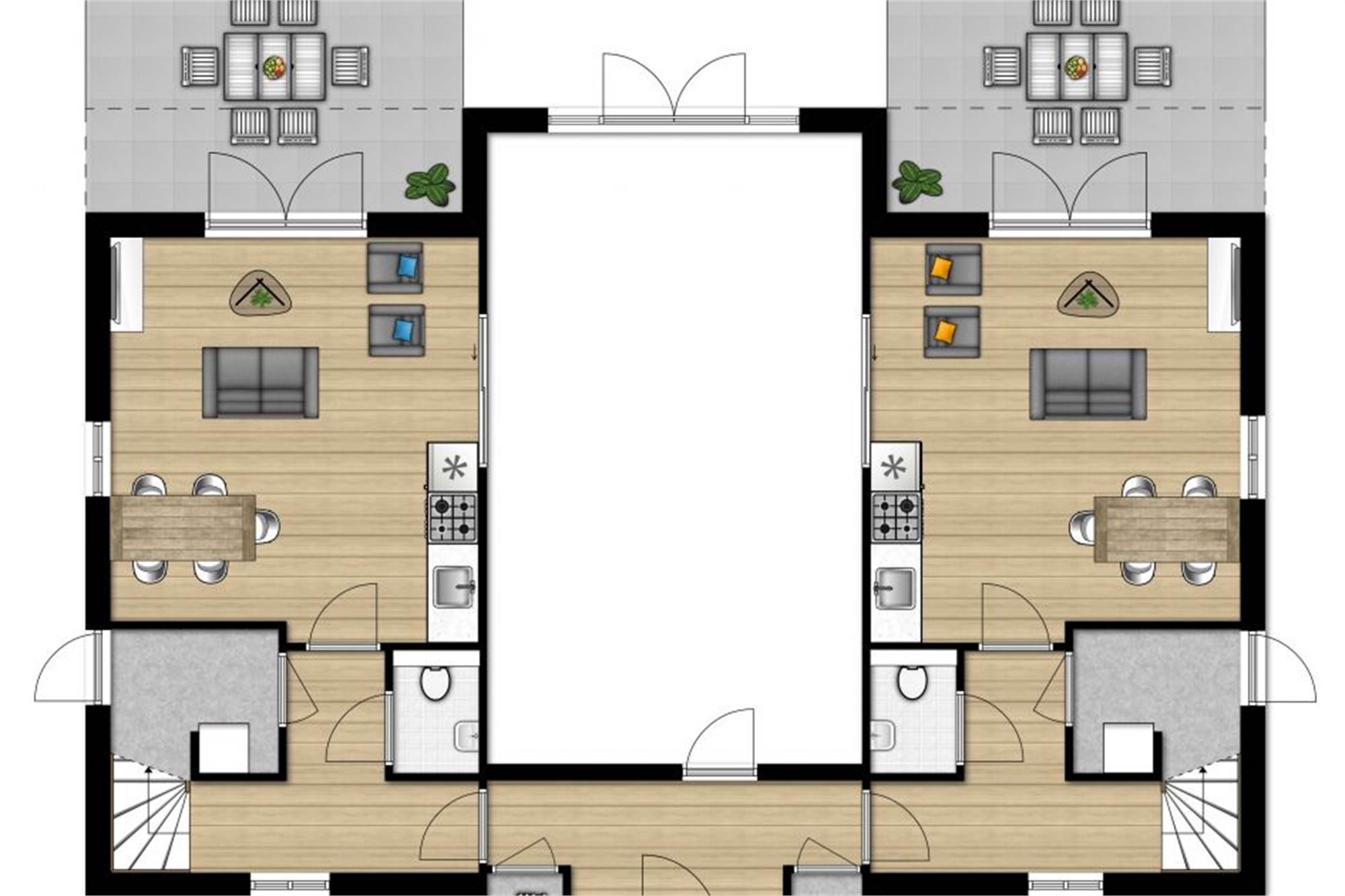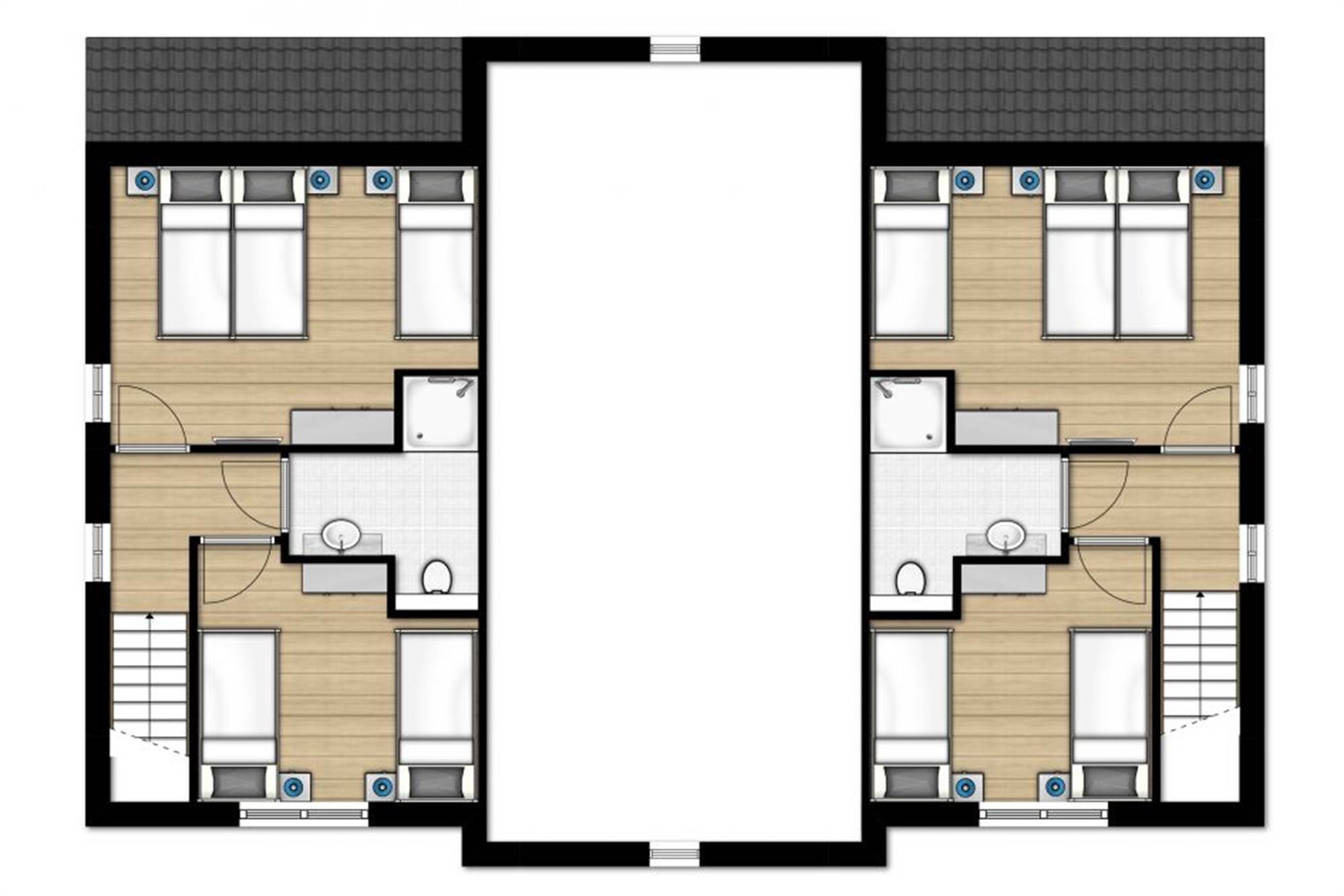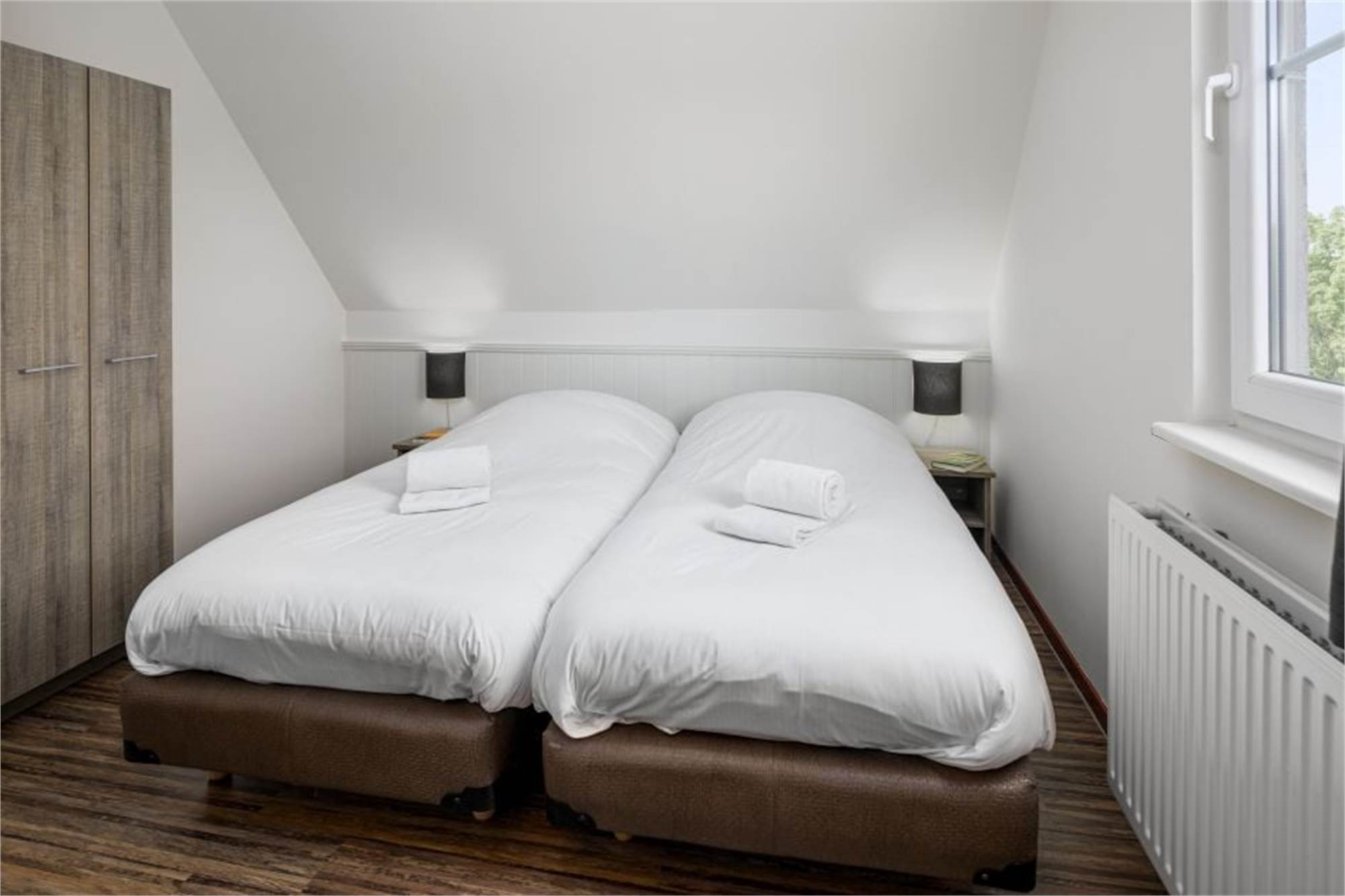 Der luxuriösen, versetzt gebaute Bungalow in der Résidence Klein Vink eignet sich für 5 Personen und gehört zu einem Komplex von drei Wohnungen. Typ KVR5 befindet sich an der linken oder rechten Seite. Über einen gemeinschaftlichen, zentralen Eingang erreichen Sie Ihren eigenen Flur, der Zugang zum hellen Wohnzimmer mit Flügeltüren zur Terrasse bietet. Die Küche ist mit luxuriösen Geräten, wie z. B. Geschirrspüler ausgestattet. Im Obergeschoss finden Sie 1 Schlafzimmer mit 2 Einzelbetten und 1 Schlafzimmer mit 3 Einzelbetten. Es gibt ein Badzimmer mit Dusche und Toilette. Im Erdgeschoss gibt es noch eine separate Toilette. Sie haben die Möglichkeit WiFi gratis zu nutzen.
