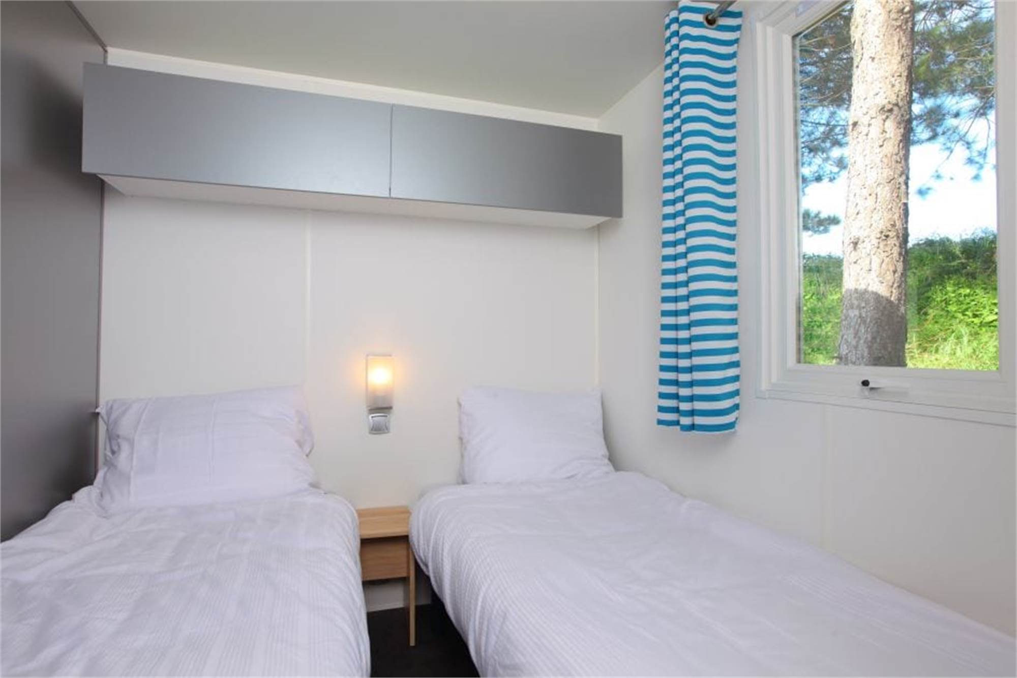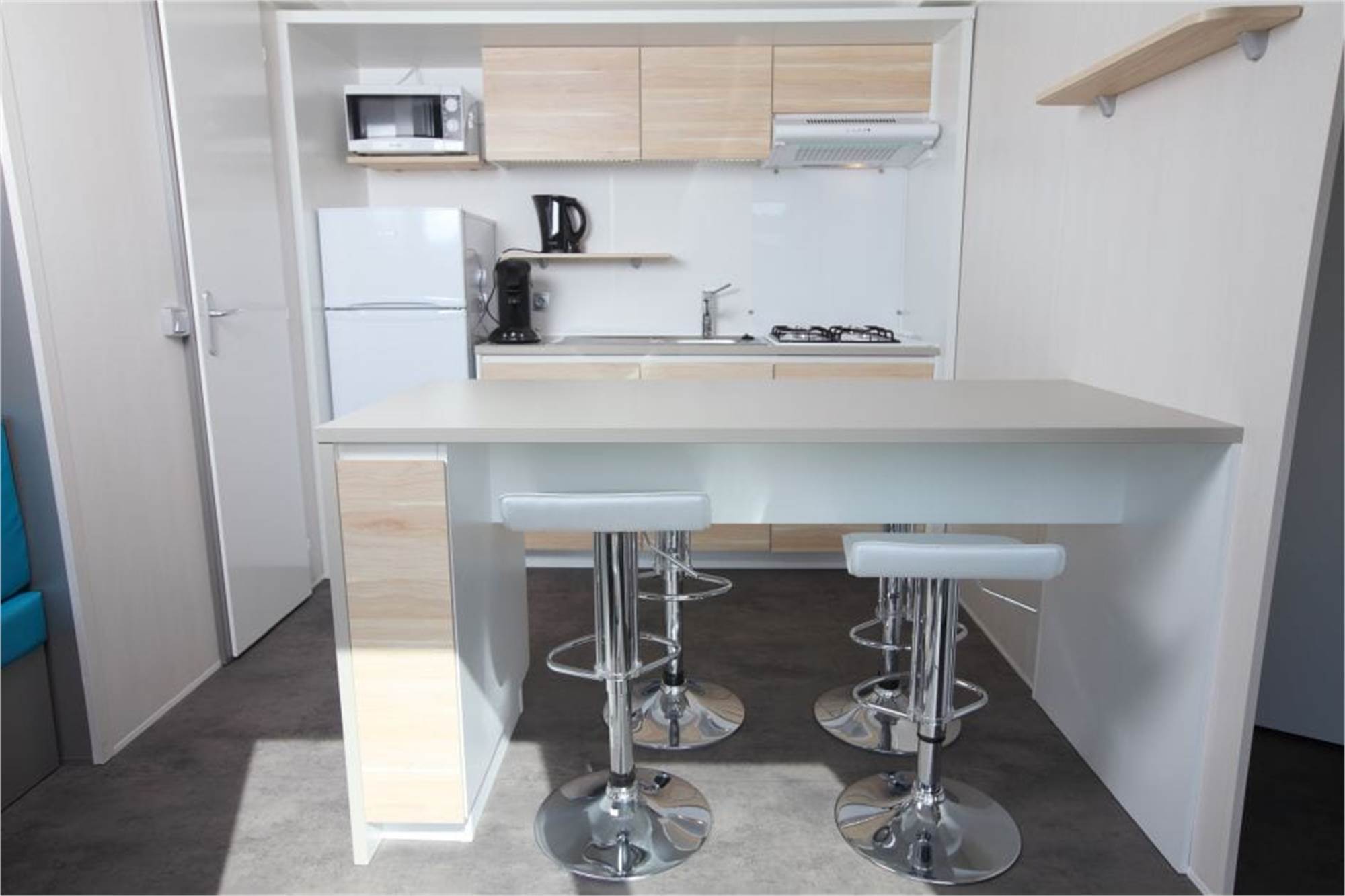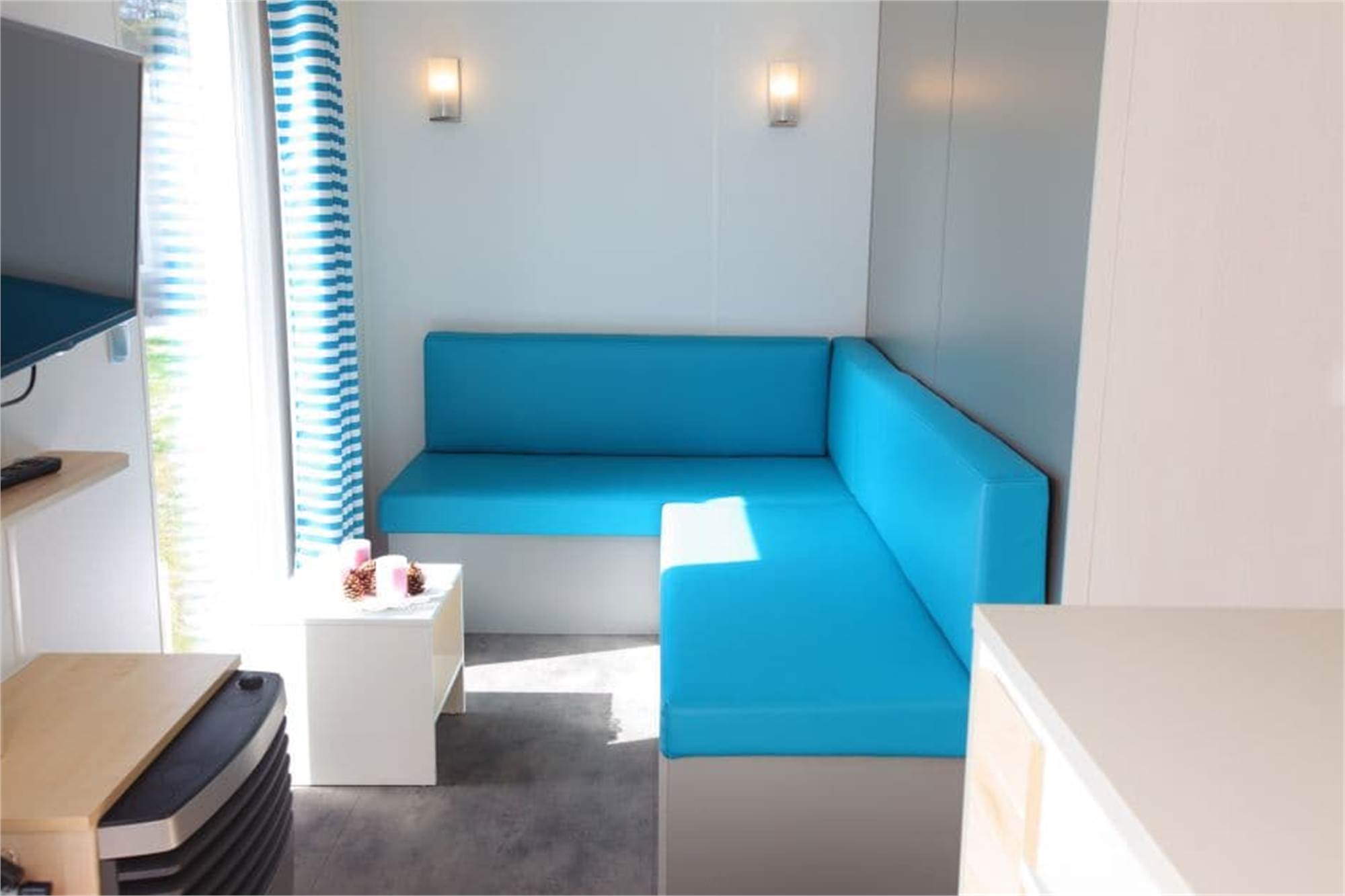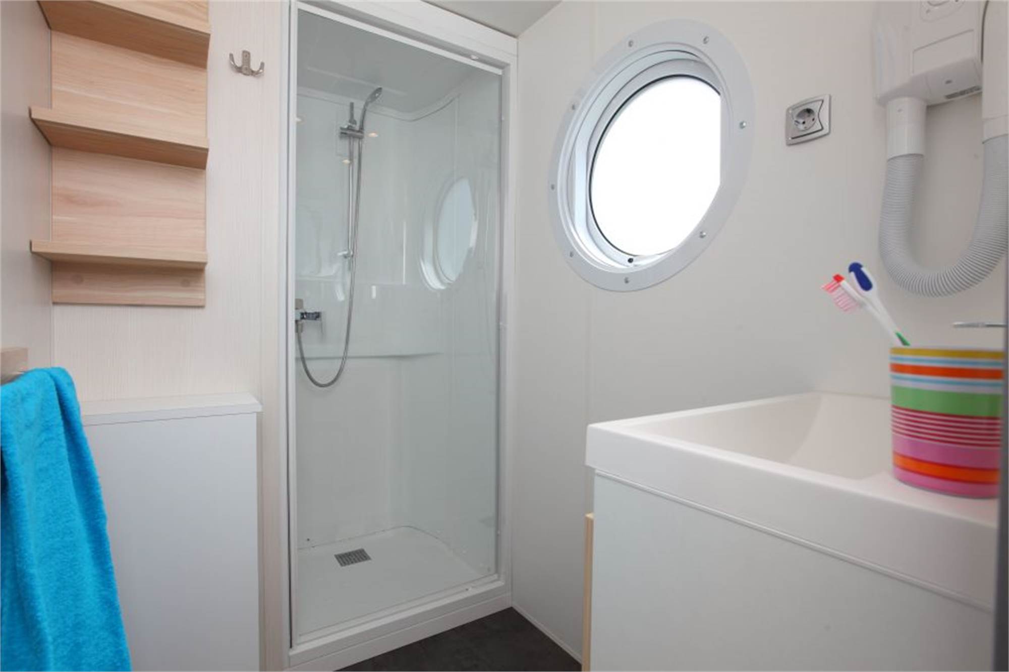 Das klein aber praktisch und modern eingerichtet Chalet eignet sich für 4 Personen. Im Sitzbereich befindet sich Smart-TV und die Küche ist u. a. mit Kaffeepadsystem und Mikrowelle ausgestattet. Das Chalet bietet 2 Schlafzimmer, mit jeweils 2 Einzelbetten. Im Badezimmer finden Sie eine Dusche. Es gibt eine separate Toilette und eine möblierte Terrasse. Die Nutzung von WiFi ist gratis.