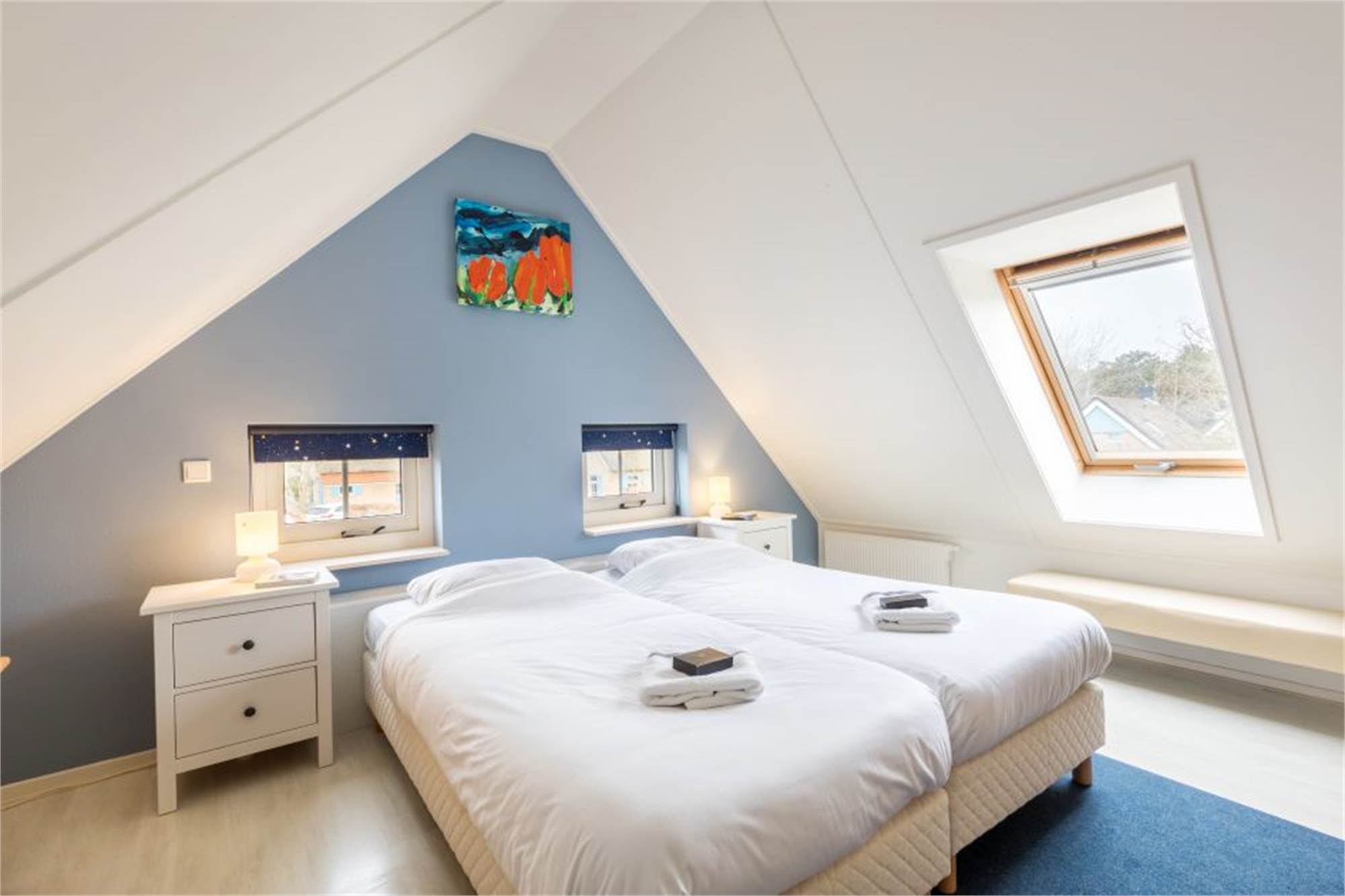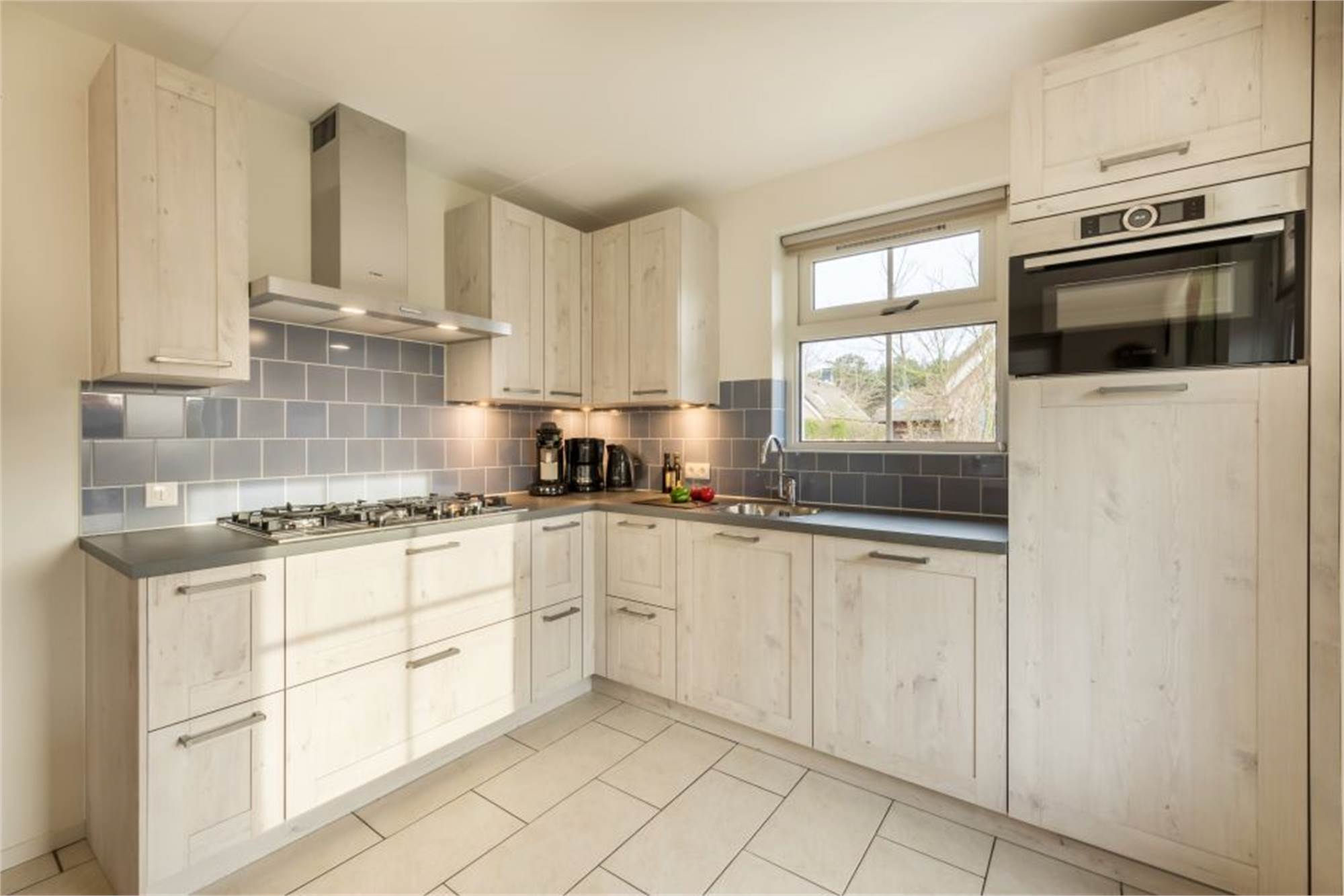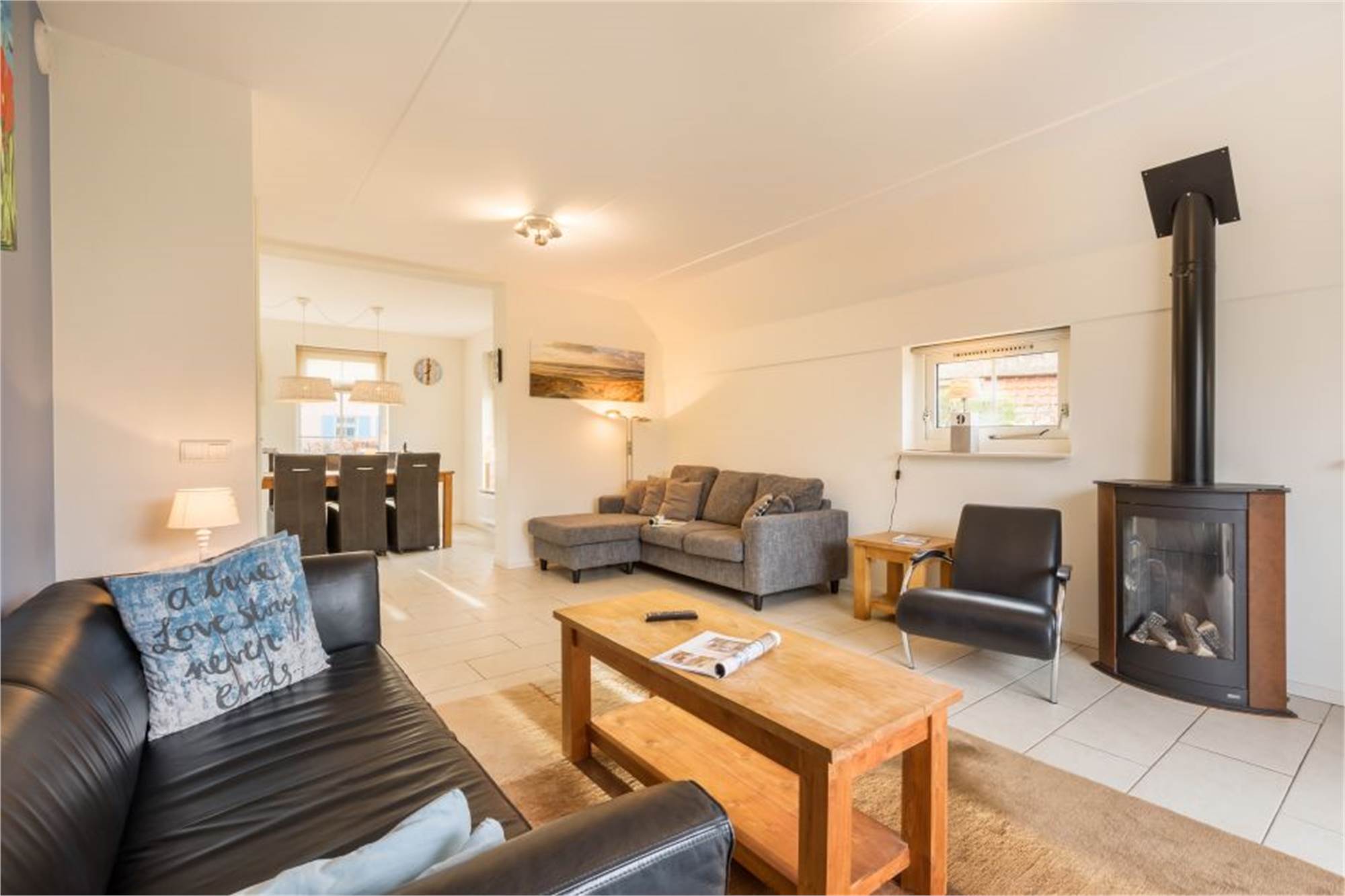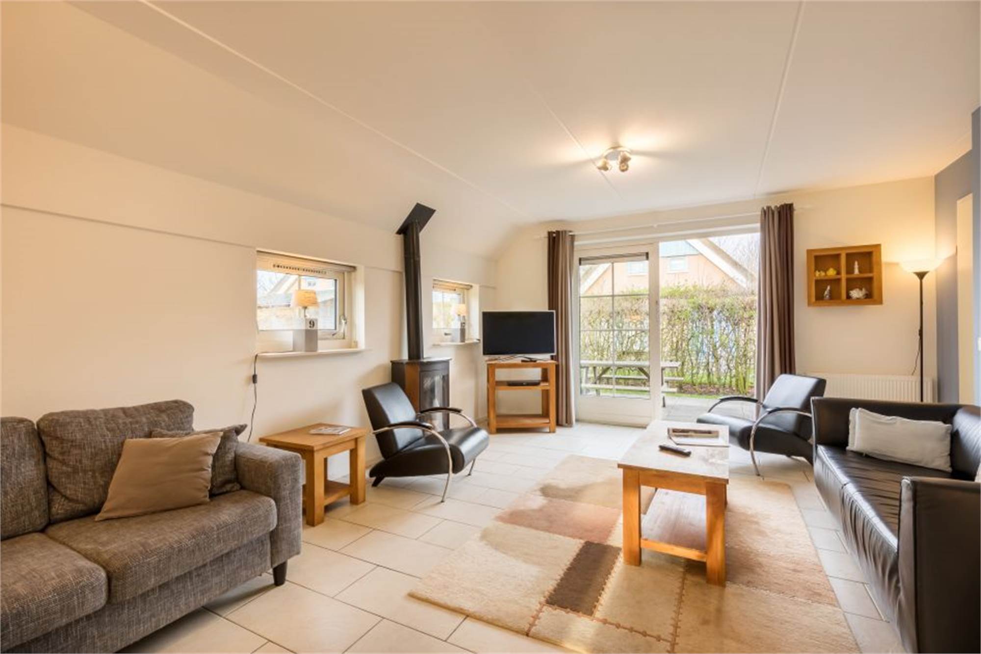 Dieser freistehende Bungalow eignet sich für 4 Erwachsene und 2 Kinder. Im Erdgeschoss finden Sie ein gemütliches Wohnzimmer und die Küche mit u. a. Kombi-Mikrowelle, Geschirrspüler und Kaffepadmaschine. Auch 1 Badezimmer mit Dusche und ein separates Gäste-WC. Im Obergeschoss befinden sich 2 Schlafzimmer mit je 2 Einzel-Boxspringbetten und einen Alkoven fur 2 Kinder. Der Bungalow verfügt außerdem über eine Waschmaschine und im Außenbereich finden Sie eine möblierte Terrasse.