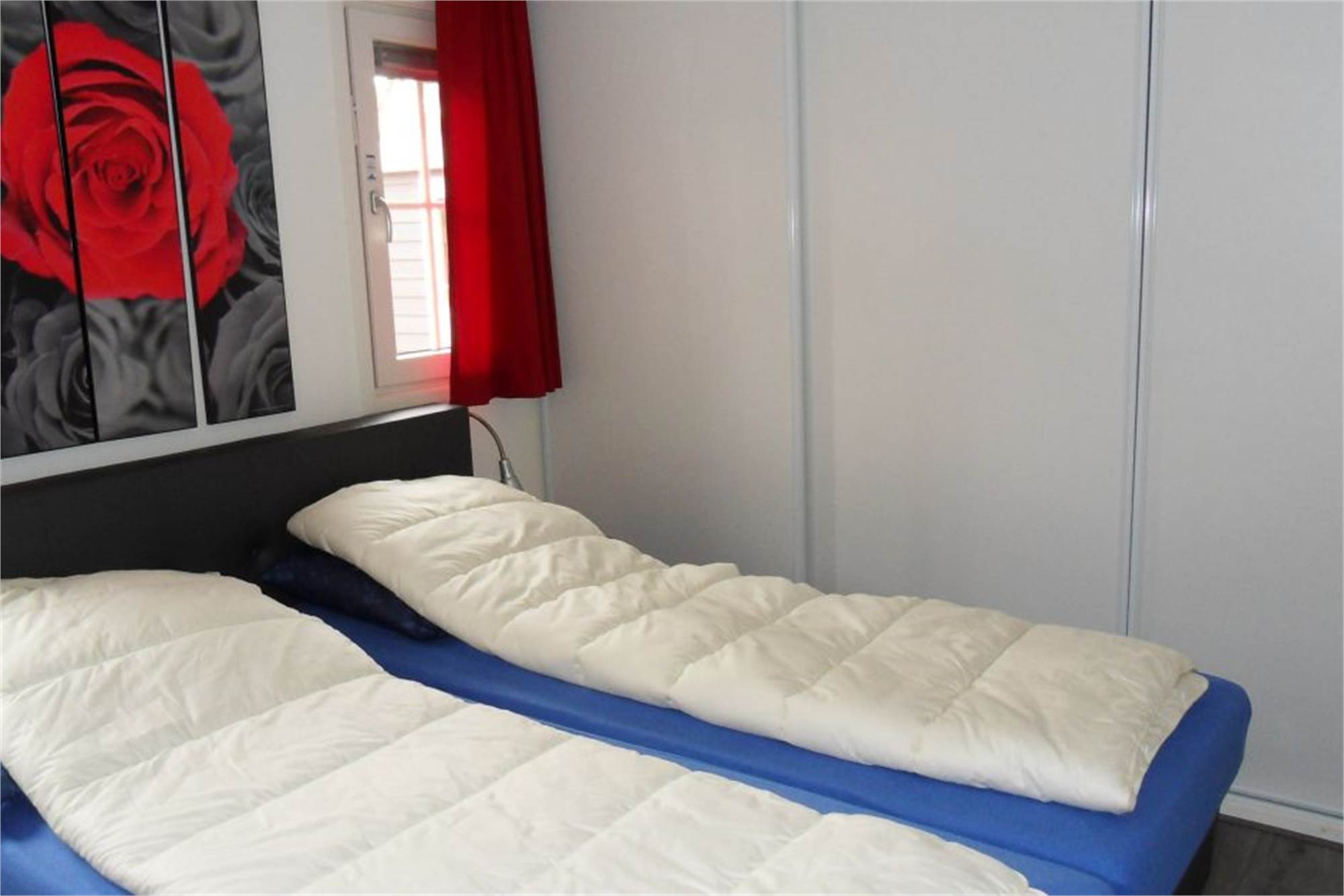 Einteilung: Wohnzimmer mit Sitz- und Essecke und sonnigem Erker. Offene Küche mit u. a. Kombi-Mikrowelle und Geschirrspüler. Badezimmer mit Waschtisch, Dusche und separater Toilette. Drei Schlafzimmer, davon zwei mit je zwei Einzelbetten und eins mit Etagenbett. Terrasse mit Gartenmöbeln. Alle Chalets verfügen über einen freistehenden Abstellraum.