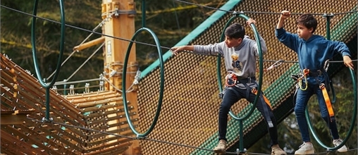 Eine spannende Klettertour auf Kinderhöhe im Wald. Der Kletterparcours ist auf Kinder abgestimmt und findet unter professioneller Aufsicht statt. So können die Kids hier ganz einfach und sicher für echte Abenteuer in größeren Höhen üben.