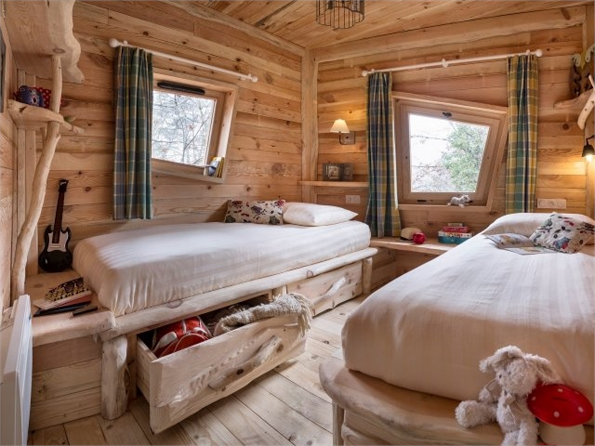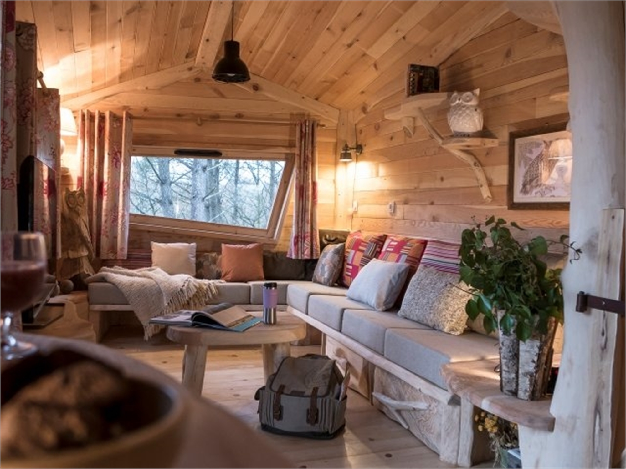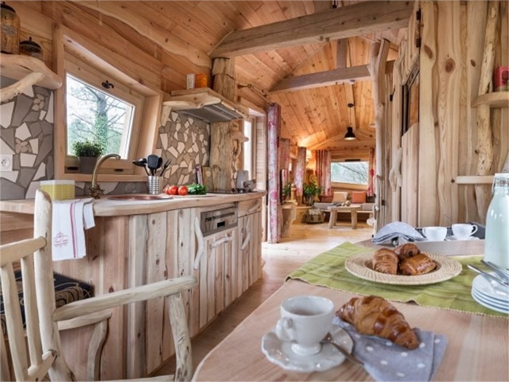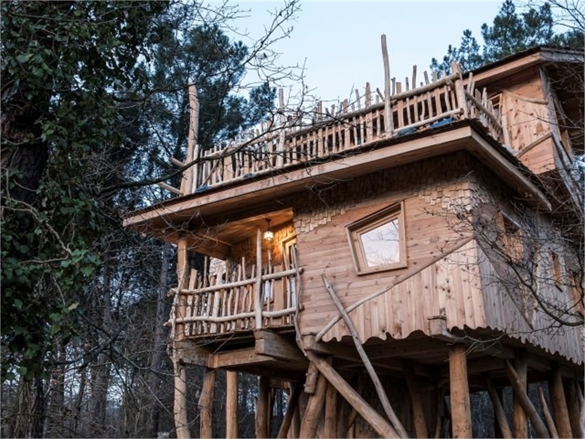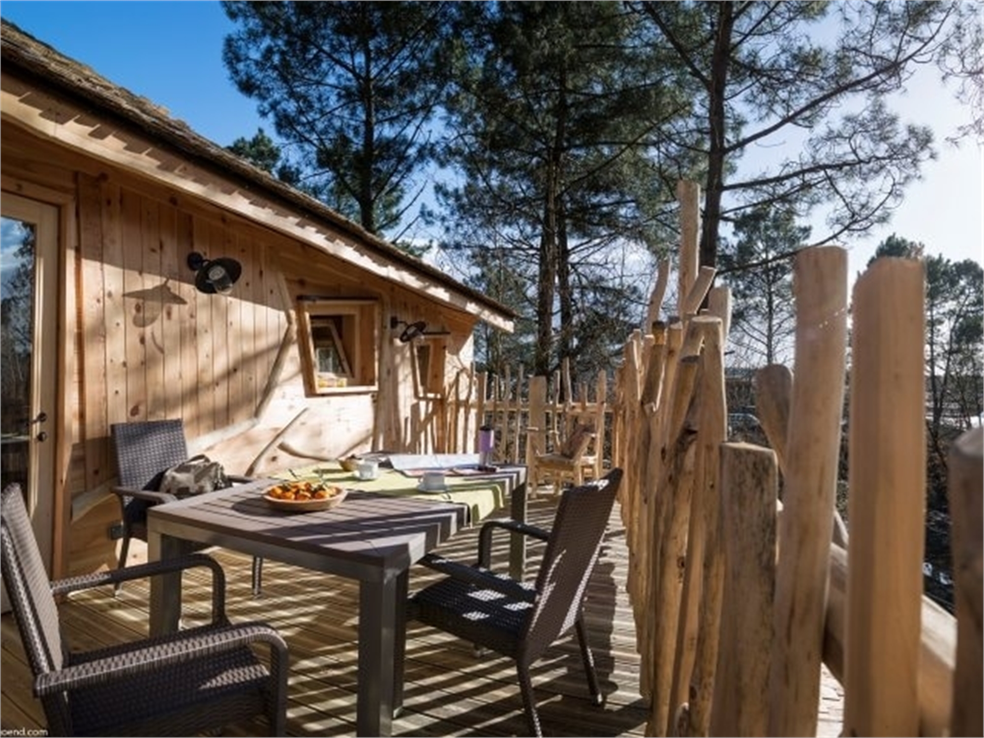 Genießt die atemberaubende Aussicht von der Terrasse eures eigenen Baumhauses.