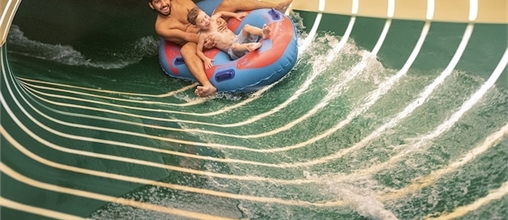 Haben Sie mit der ganzen Familie Spaß in der Disco-Rutsche mit Ein- oder Zwei-Personen-Röhre. Und mit Musik!
