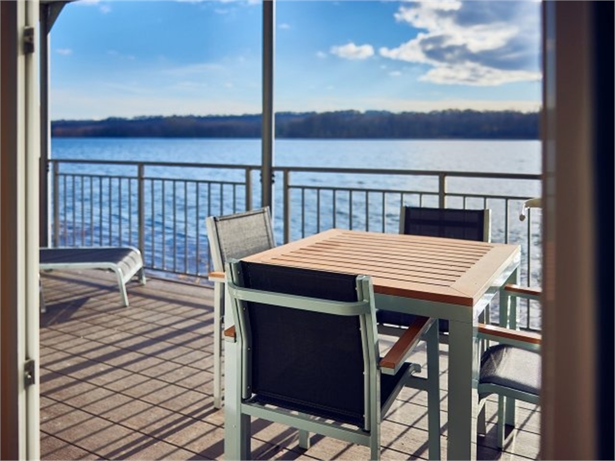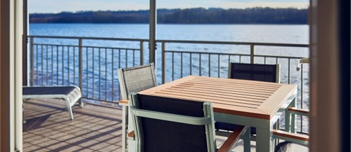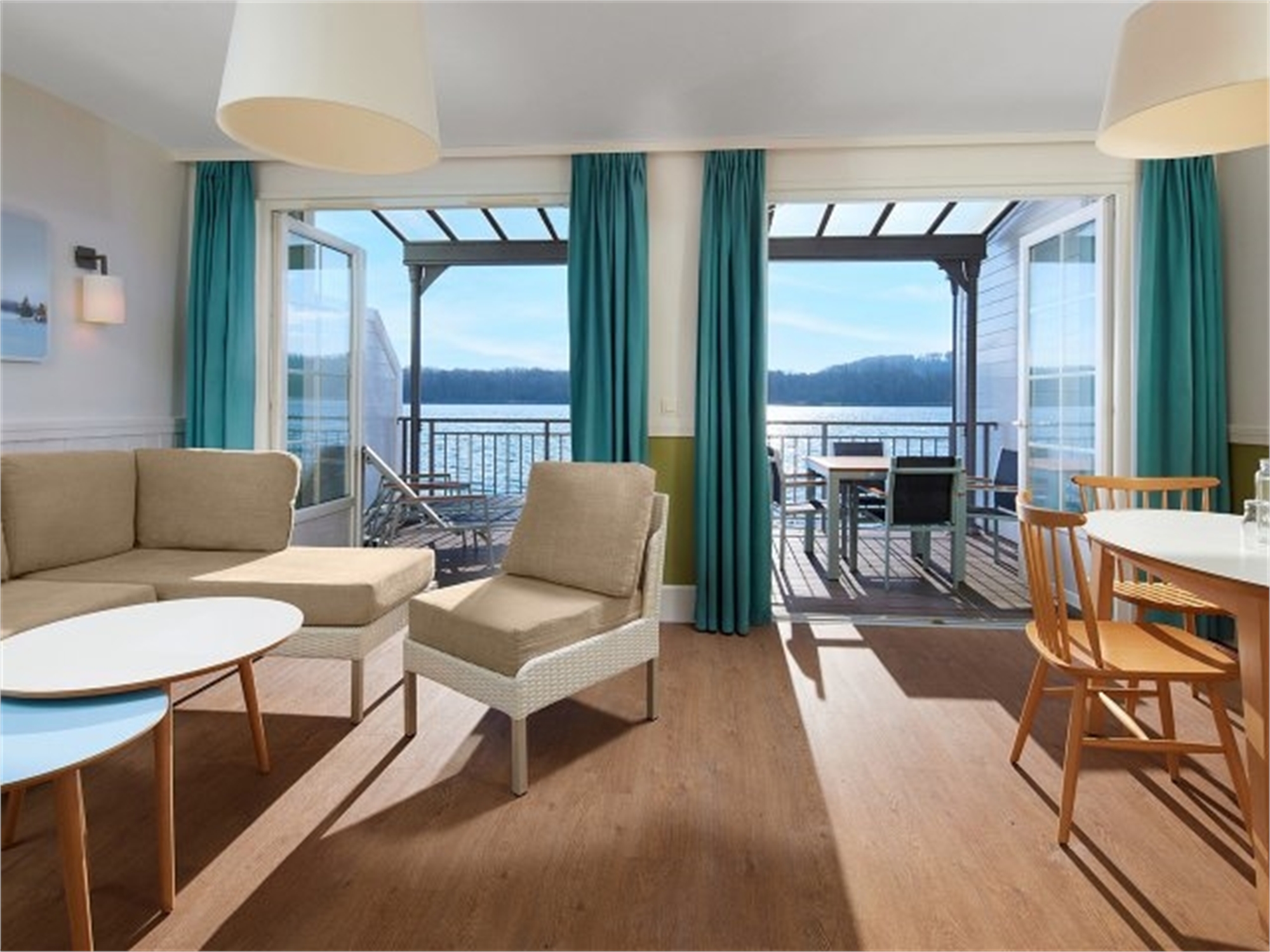 Von Ihrer überdachten Privatterrasse schweift Ihr Blick über den See. Alle Häuser des Typs Ferienhaus am See liegen direkt am Wasser. Das Panorama genießen Sie auch von innen durch die großen Fenster!