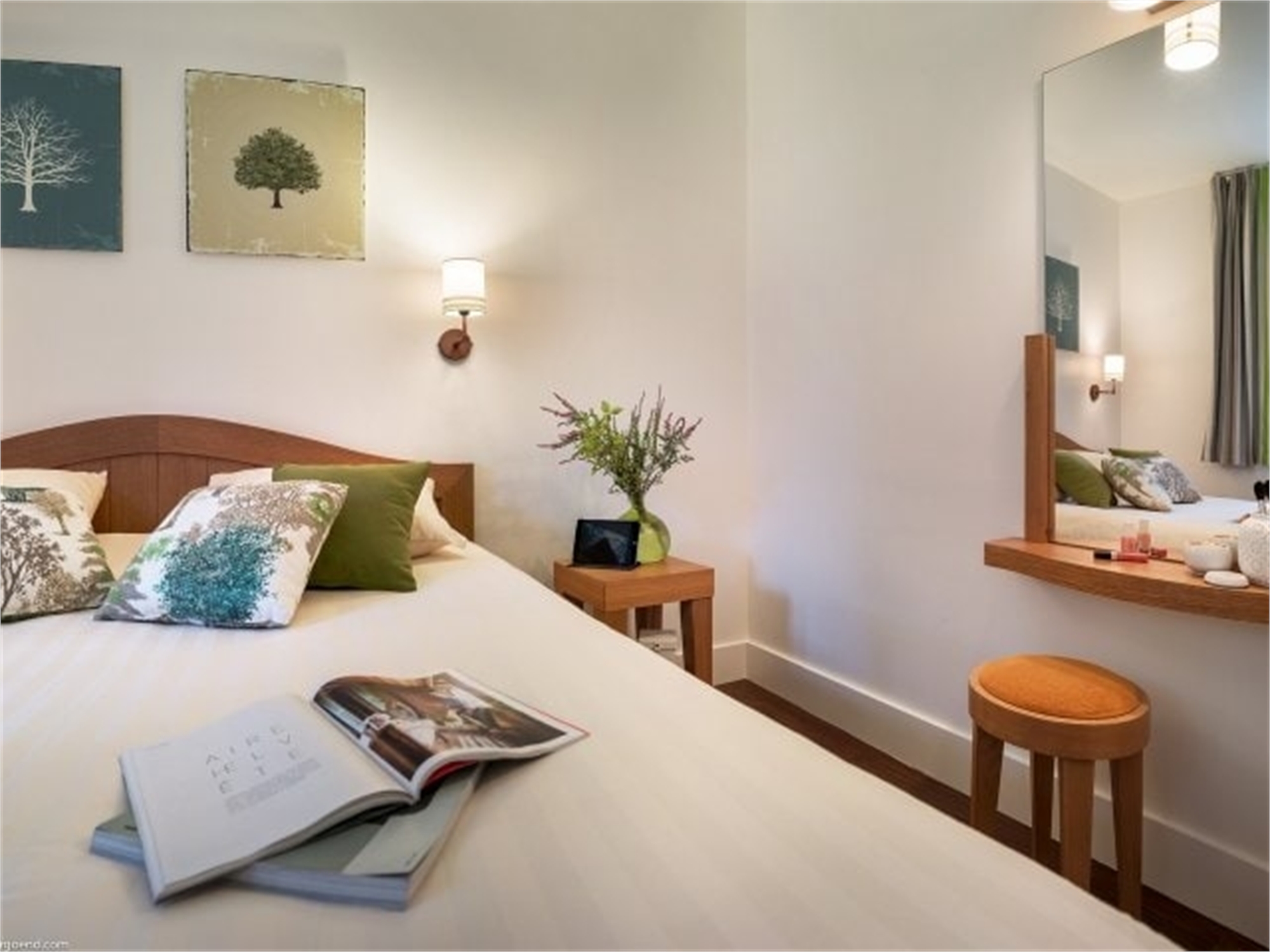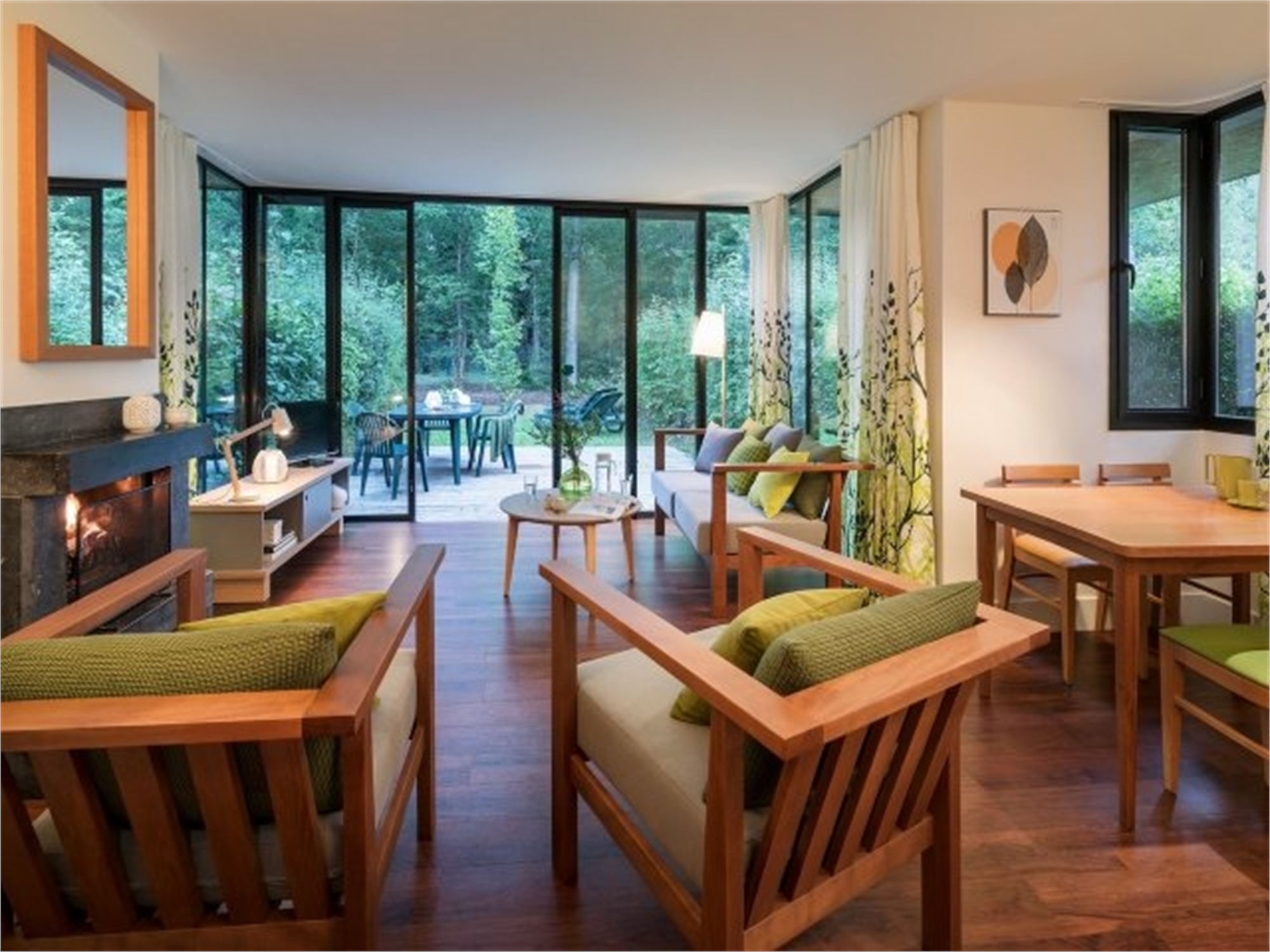 Der Name ist Programm: Die Architektur des Pagode-Ferienhauses wirkt orientalisch. Vom Boden bis zur Decke ist alles offen und hell und die großen Fenster bieten Ihnen wunderbare Ausblicke auf die umgebende freie Natur.