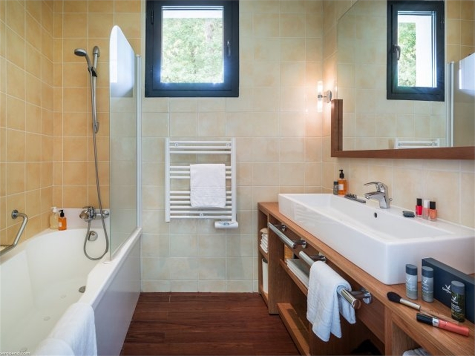 Der Name ist Programm: Die Architektur des Pagode-Ferienhauses mit seinem Doppel-Dach wirkt orientalisch. Vom Boden bis zur Decke ist alles offen und hell und die großen Fenster bieten Ihnen wunderbare Ausblicke auf die umgebende freie Natur.
